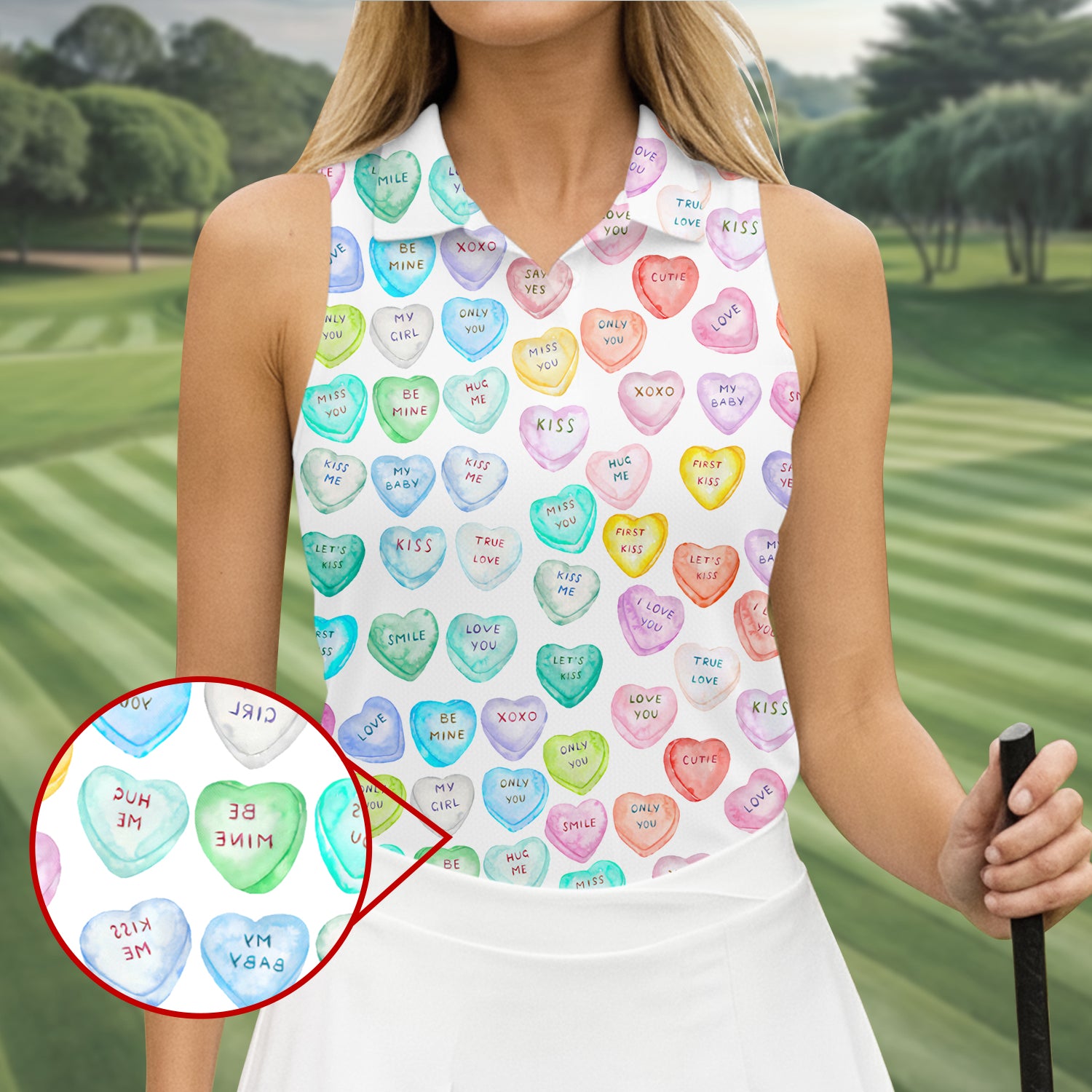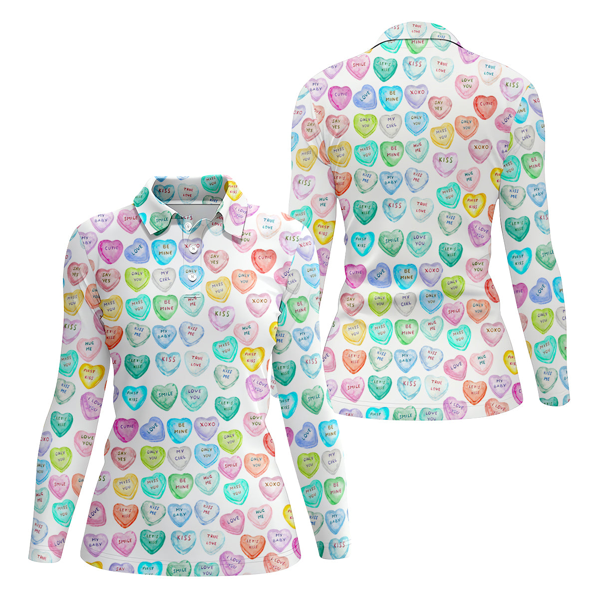 Sweet Words Watercolor Heart Women Golf Top, Valentines Golf Gift, Ladies Golf Polos