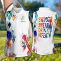 Swing Swear Drink Repeat Custom Name Golf Polo Shirt, Women Sleeveless Polo Shirt, Gift For Golfers