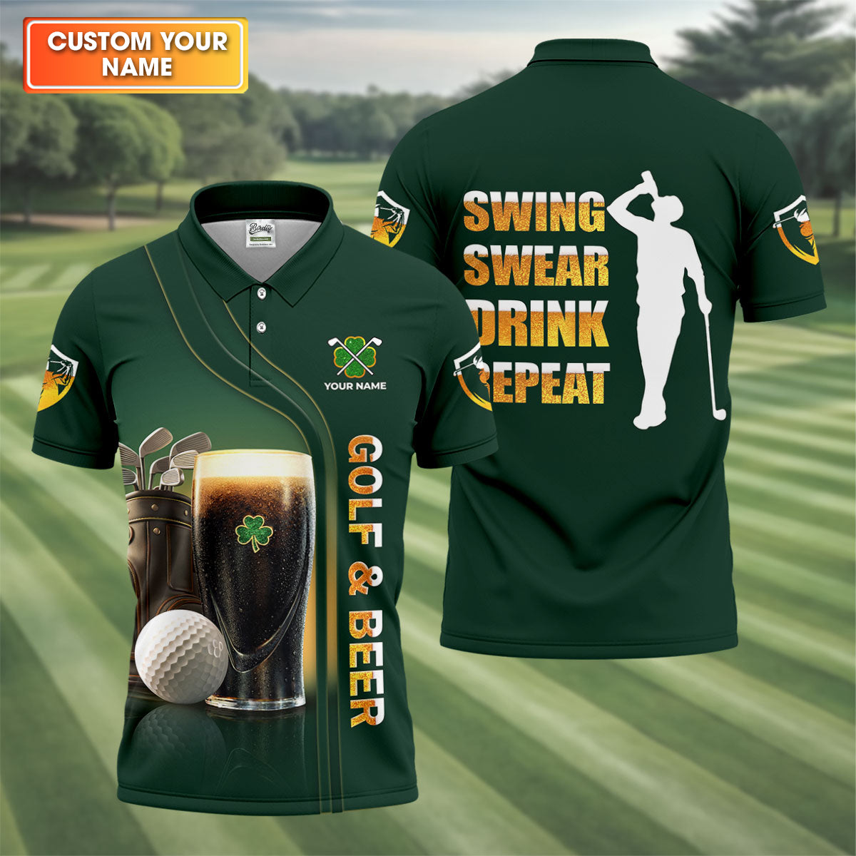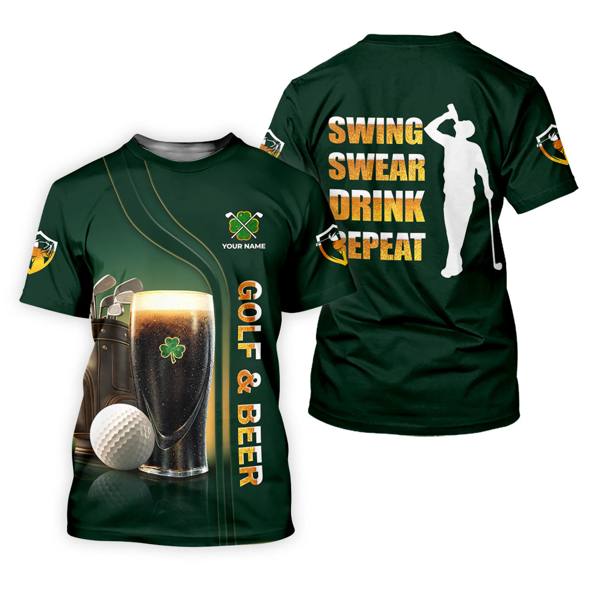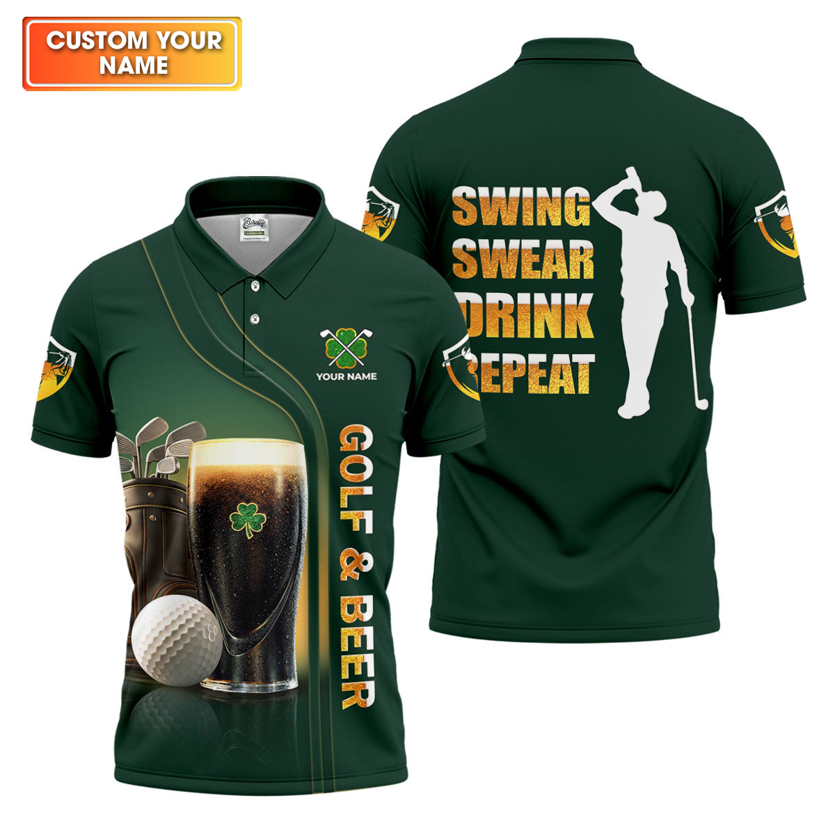 Swing Swear Drink Repeat Golf And Beer St Patrick's Day Green Golf Tops For Men, Golf Shirts For Men