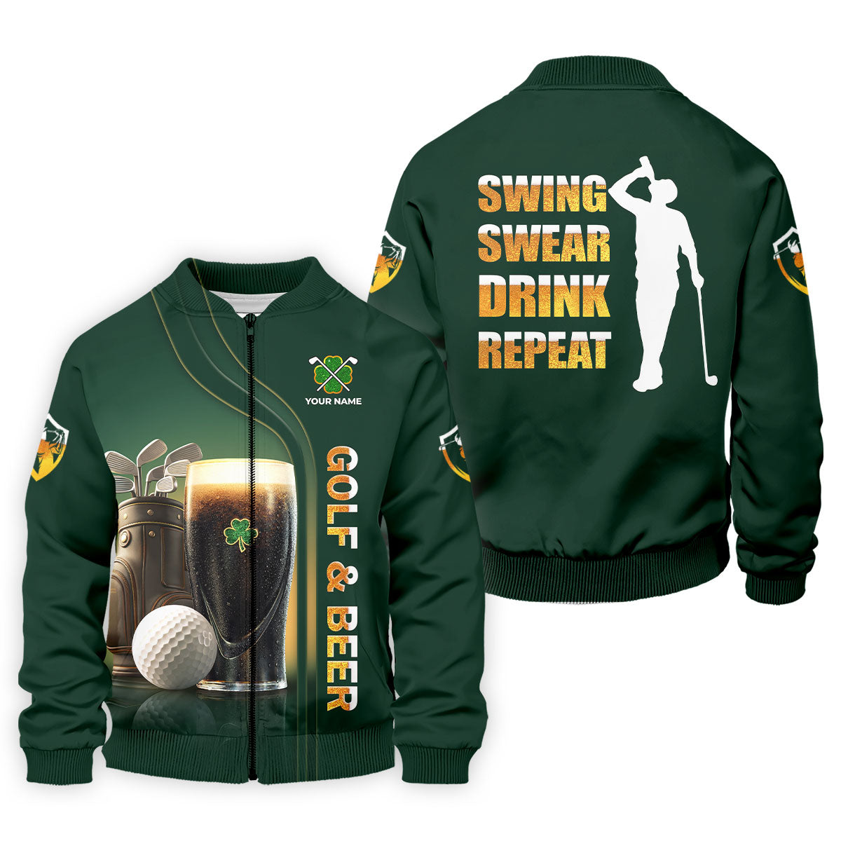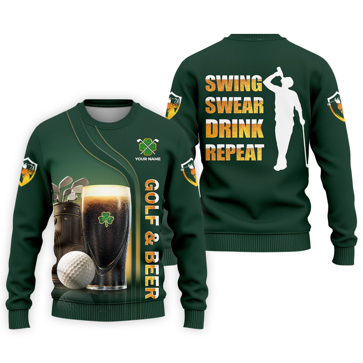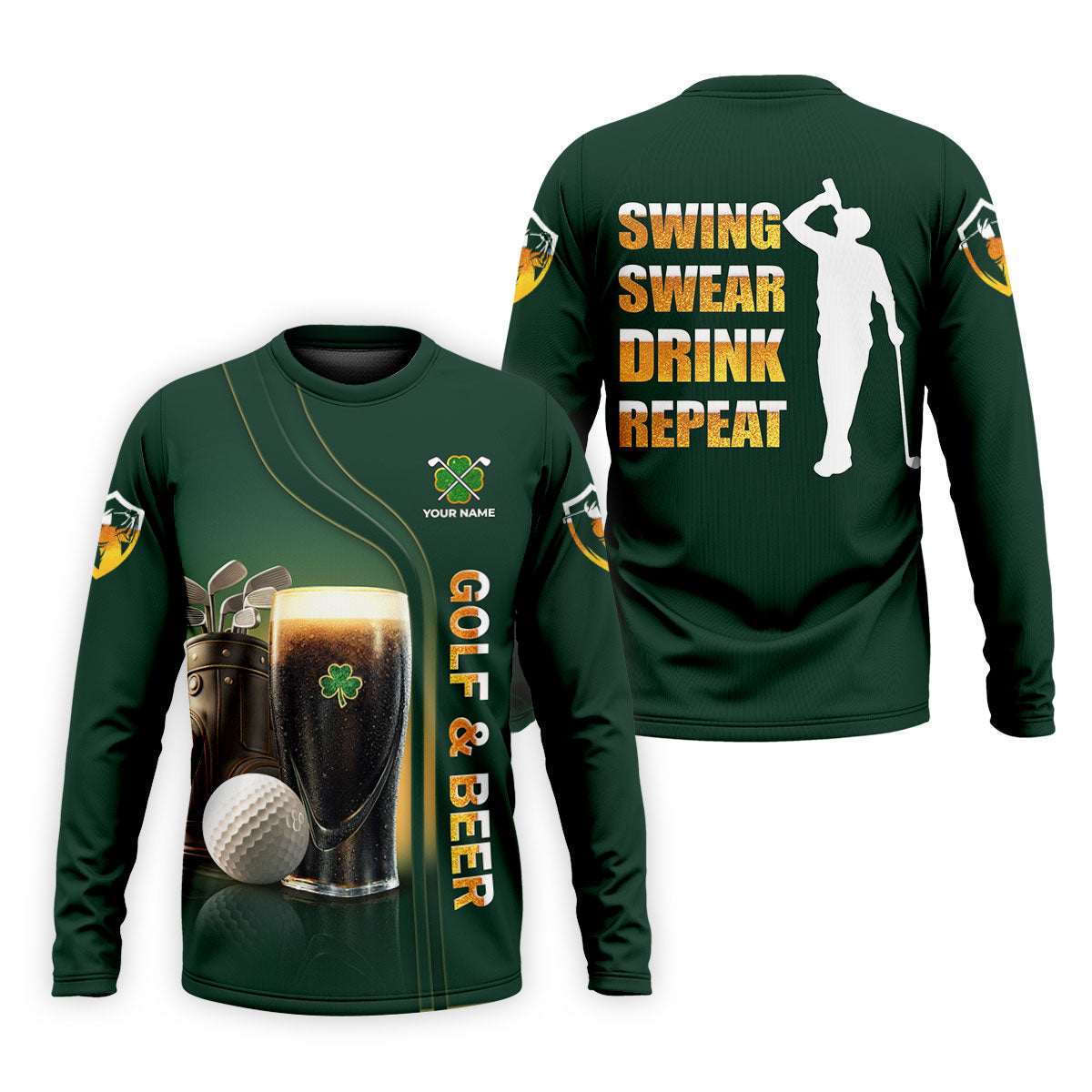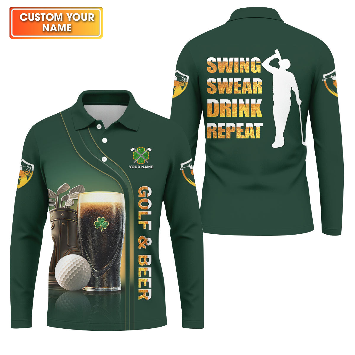 Swing Swear Drink Repeat Golf And Beer St Patrick's Day Green Golf Tops For Men, Golf Shirts For Men