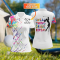 Swing Swear Drink Repeat Custom Womens Golf Polo Shirt, Golfing Apparel, Womens Golf Gifts