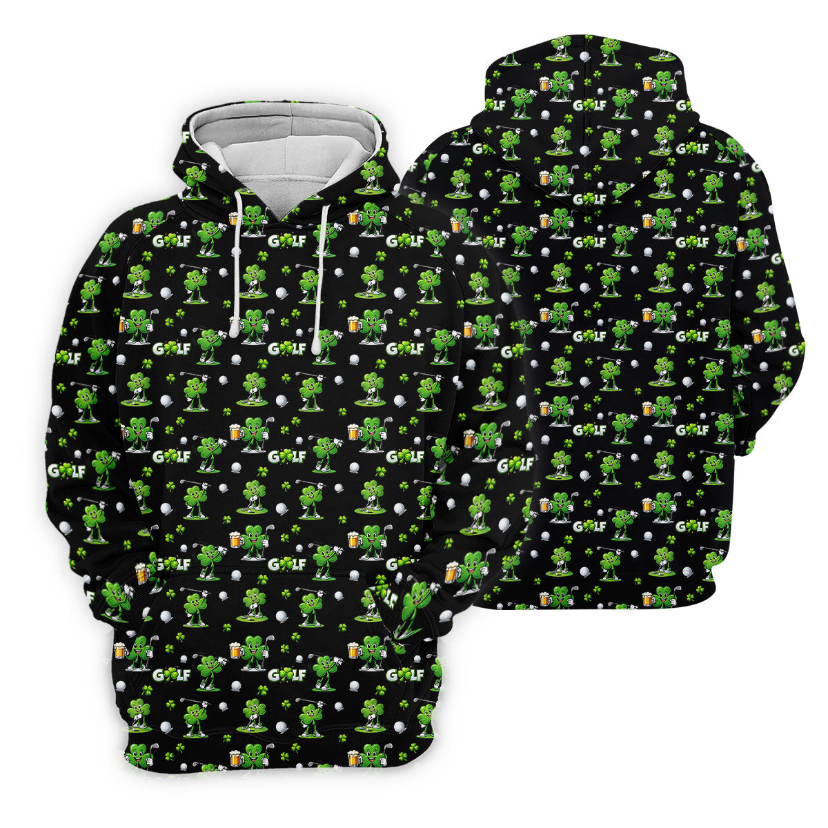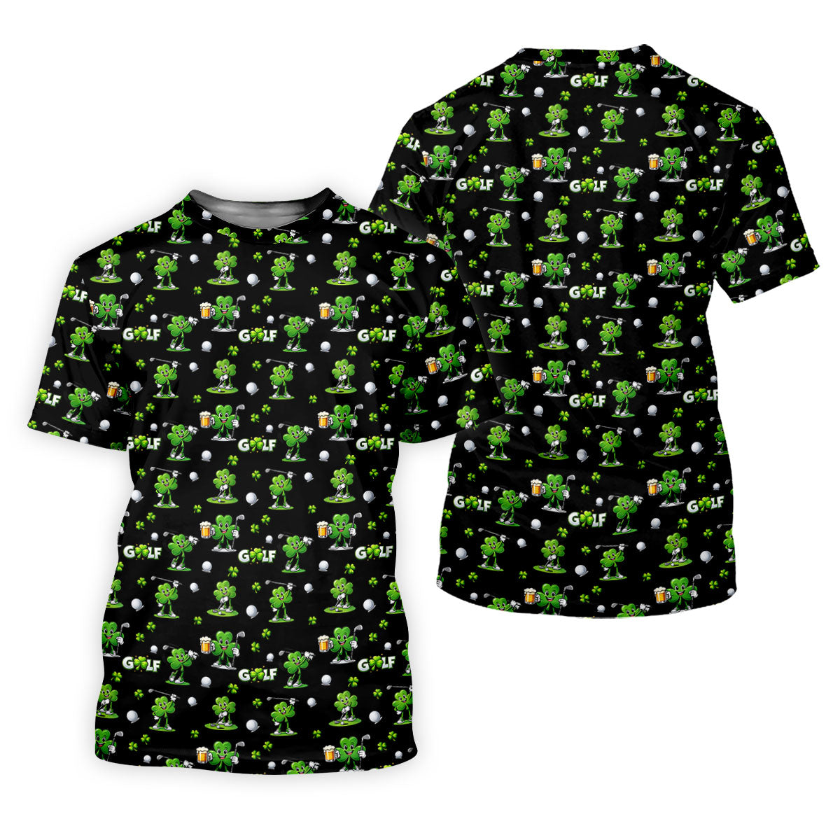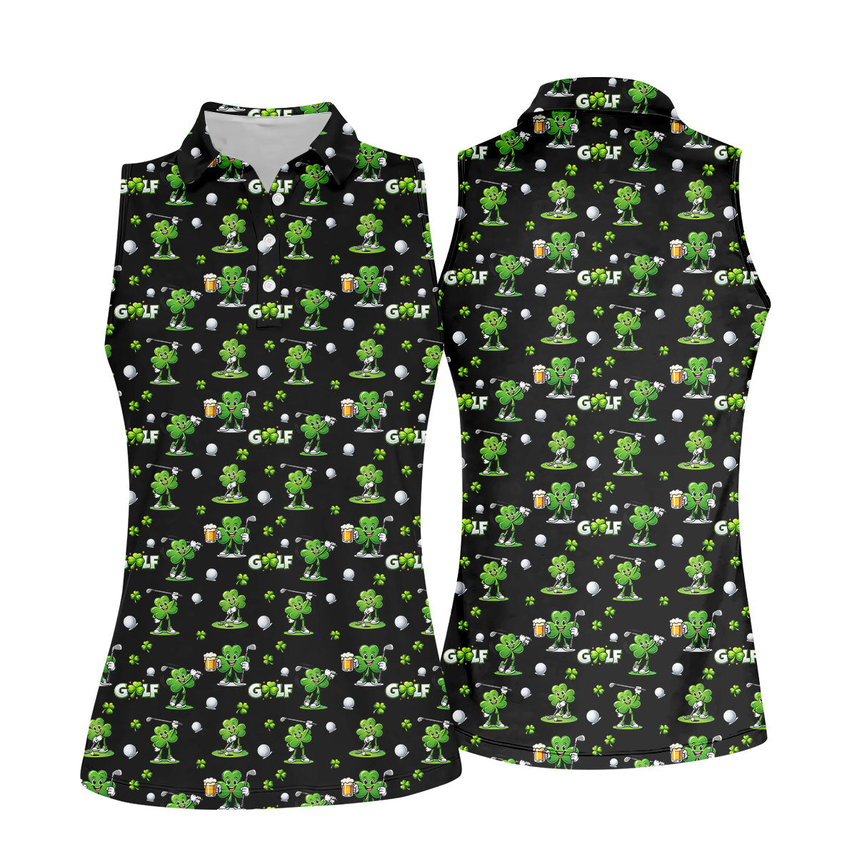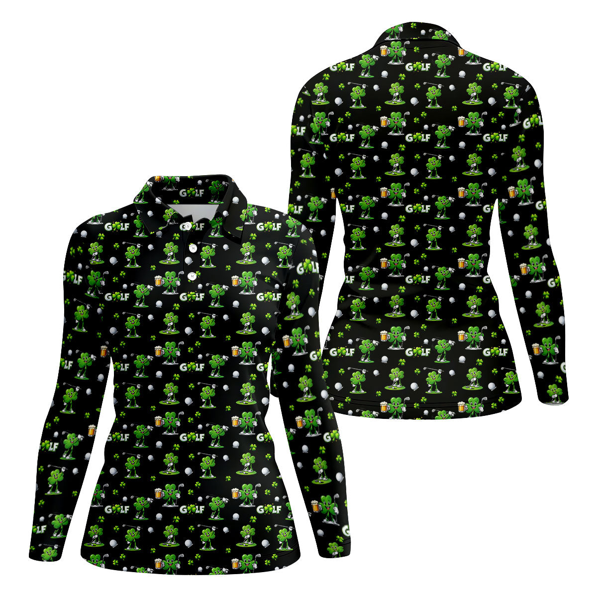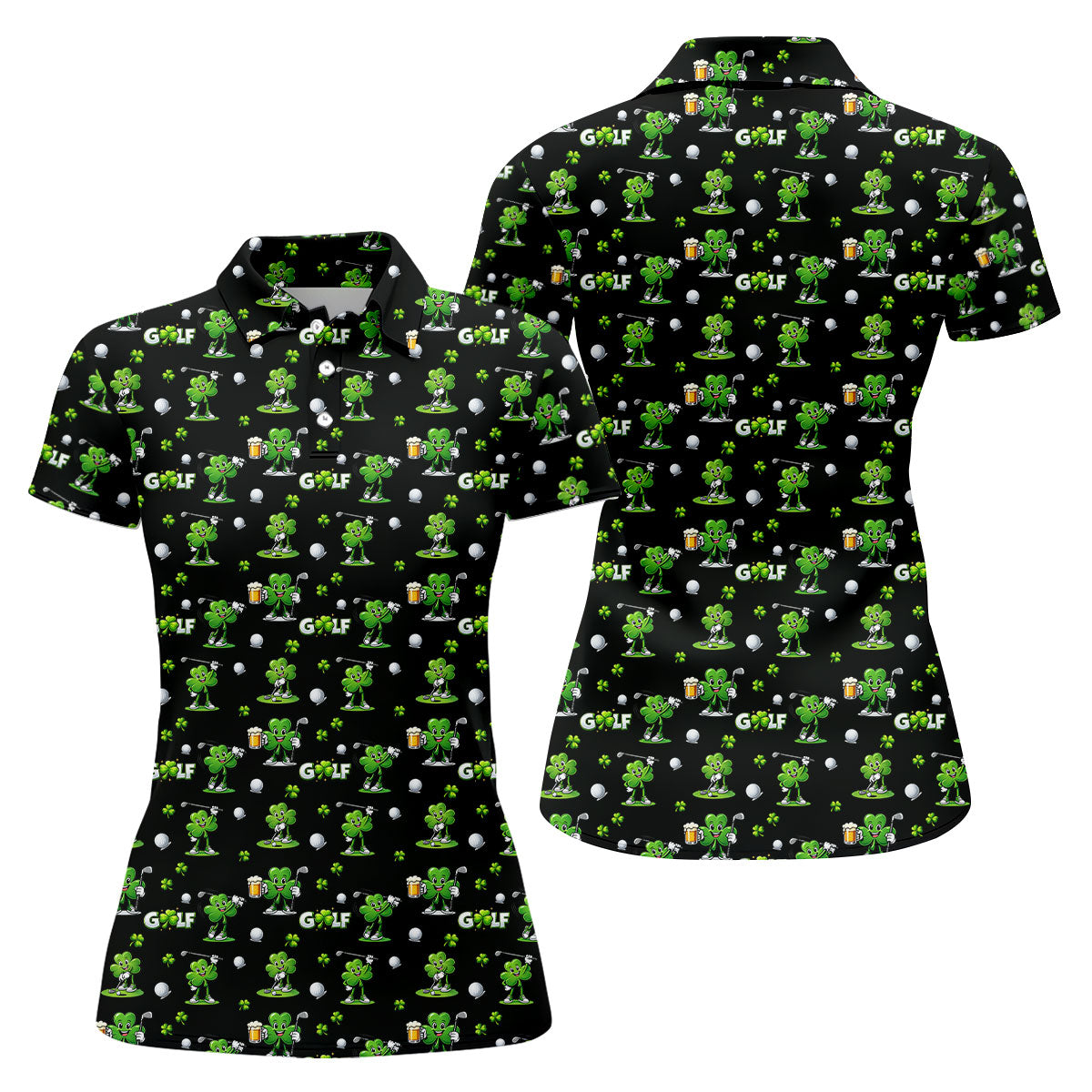 Three Leaf Clover Golf And Beer St Patrick's Day Black Golf Shirt, Women's Golf Shirts, Ladies Golf Polos