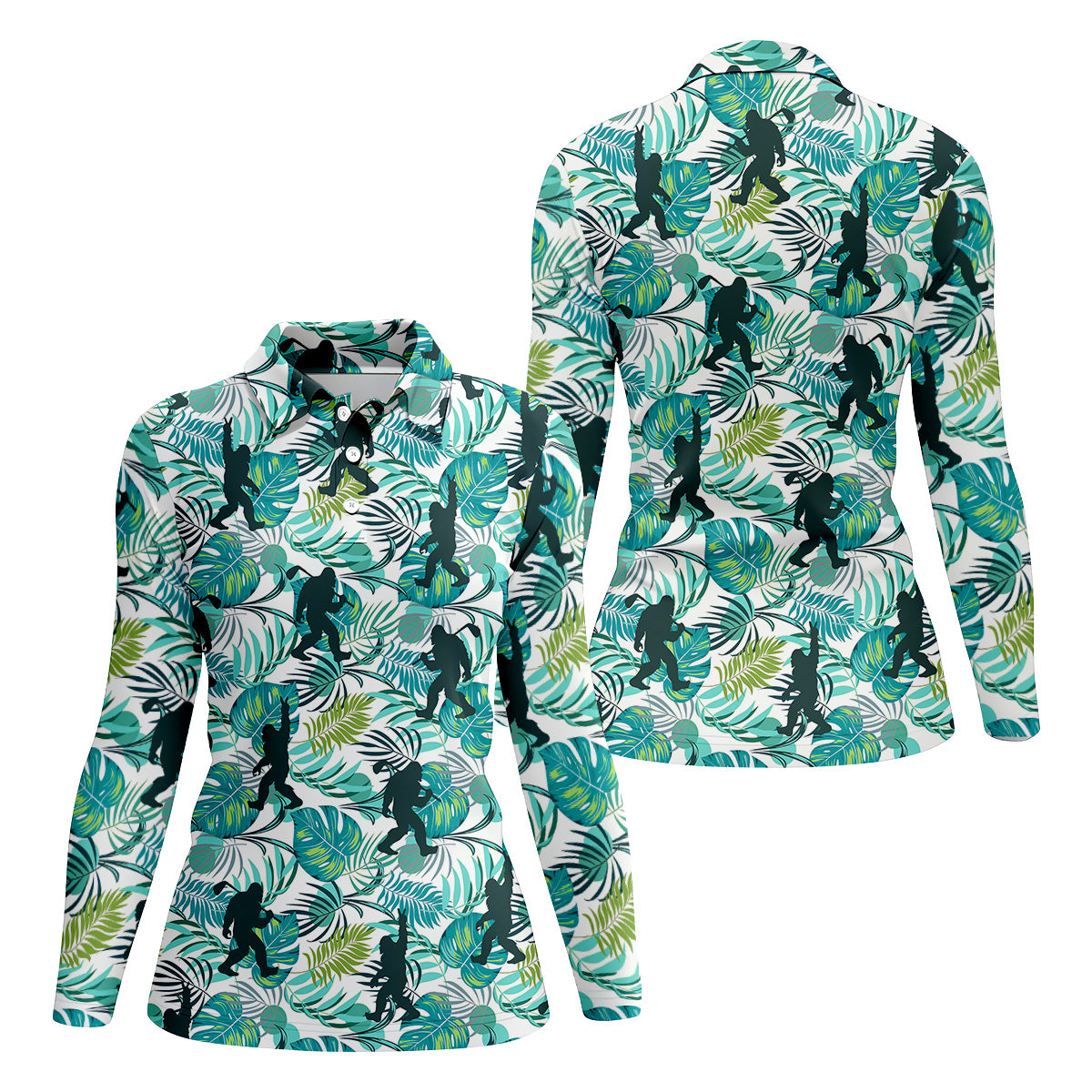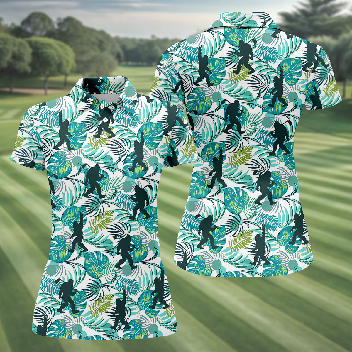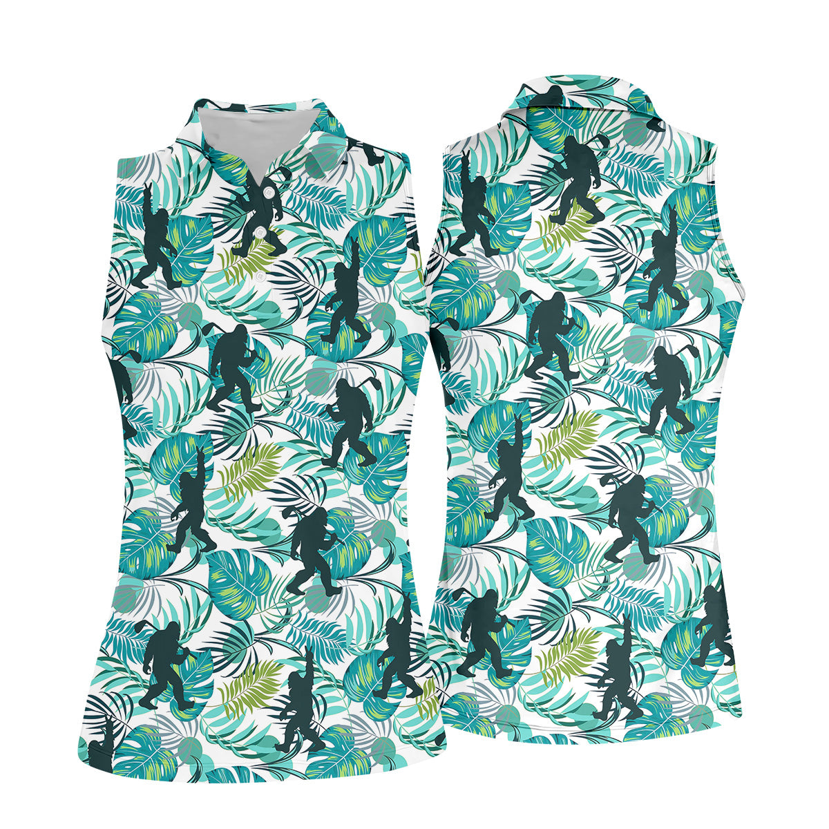 Tropical Green Bigfoot Golf Shirt, Golf Shirt For Women, Ladies Sleeveless Polo, Ladies Golf Shirts