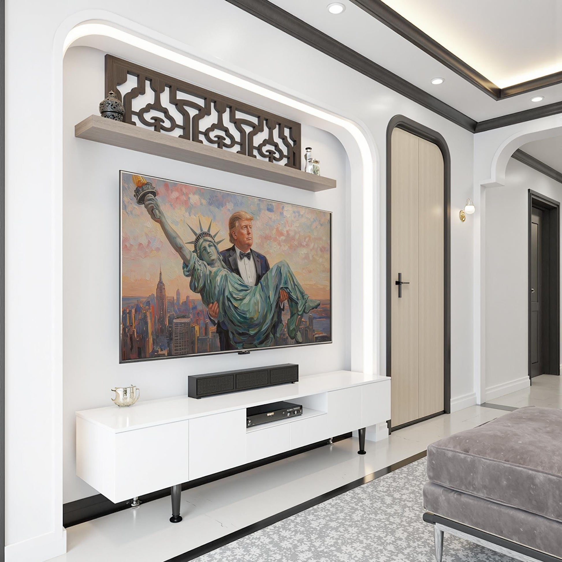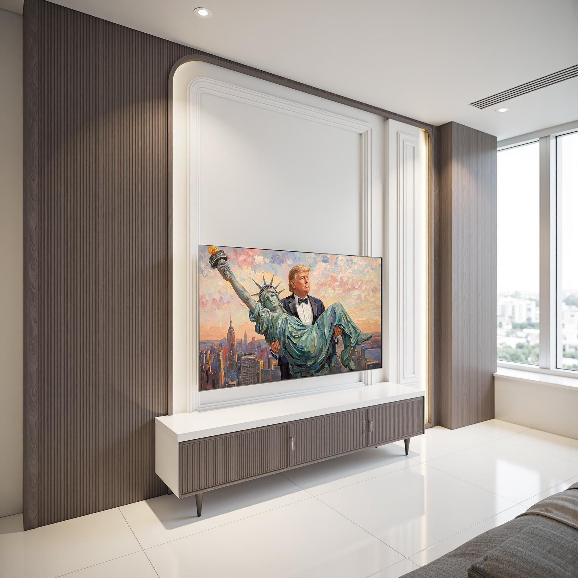Add a bold and humorous touch to your space with this Trump Carrying The Statue of Liberty Canvas Wall Art. This unique piece blends patriotism, political humor, and artistic flair, making it a standout addition to any home, office, or man cave.
