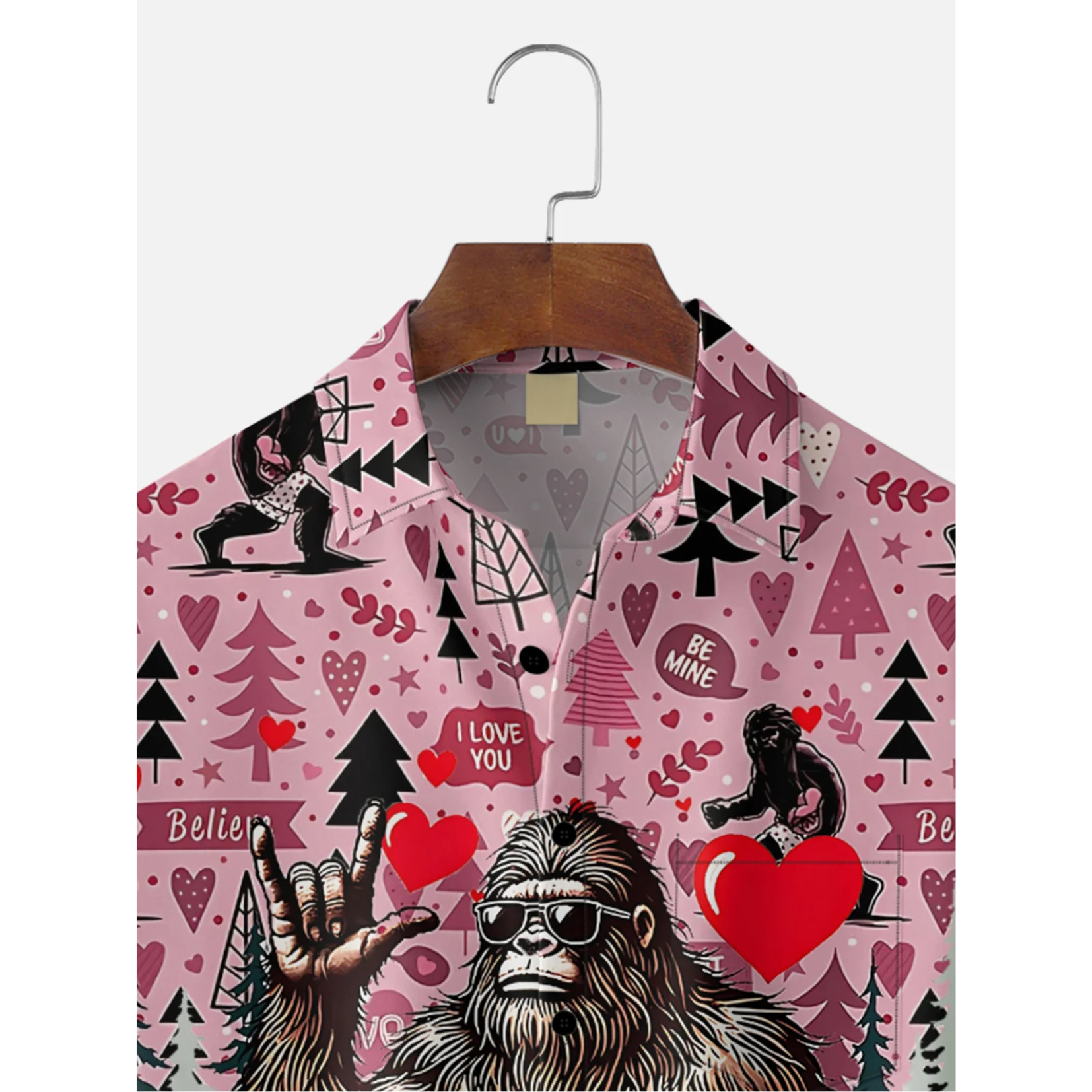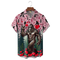 Valentine's Day Bigfoot Fun Heart Hawaiian Golf Shirt, Valentine Golf Gift, Tropical Vibe Funny Golf Shirt