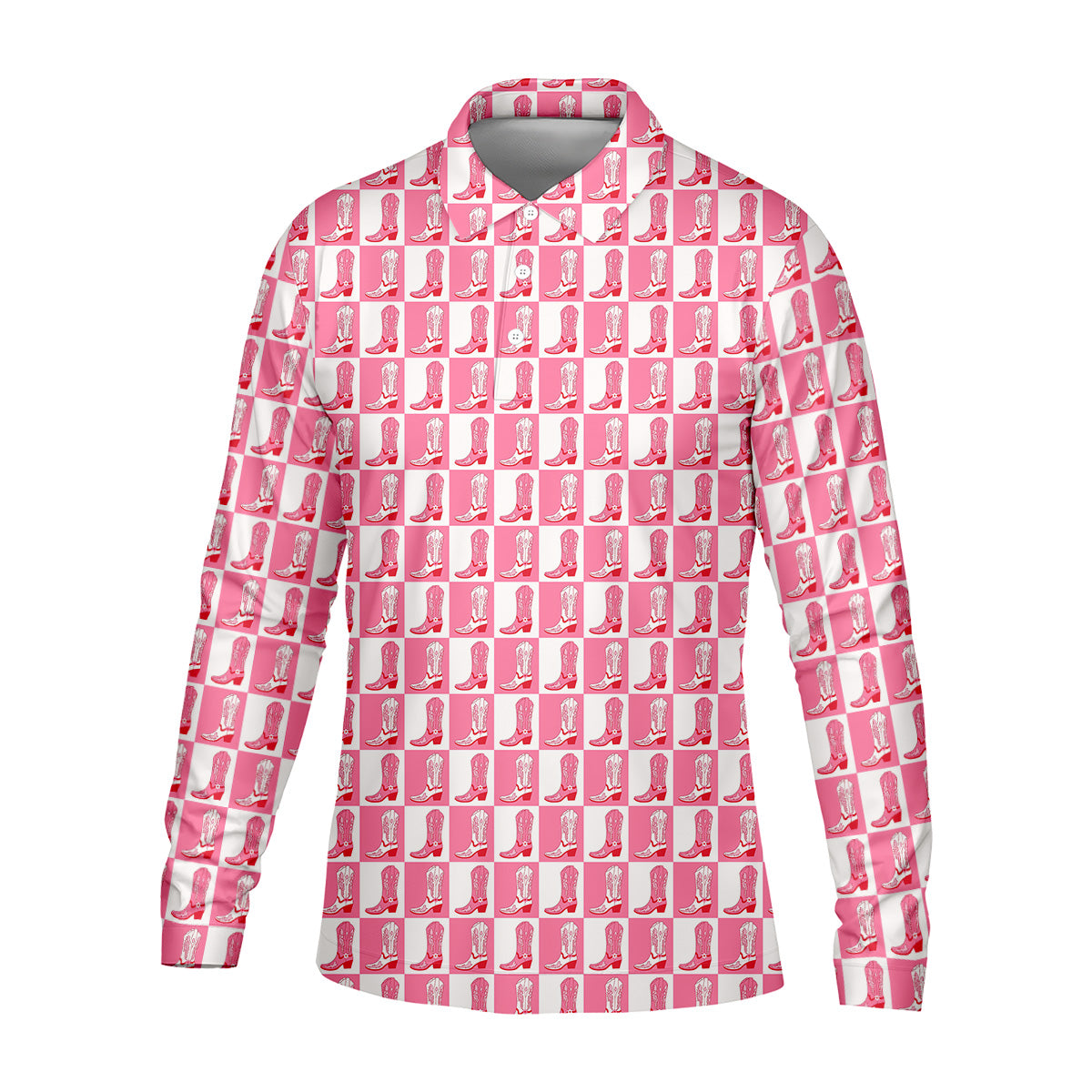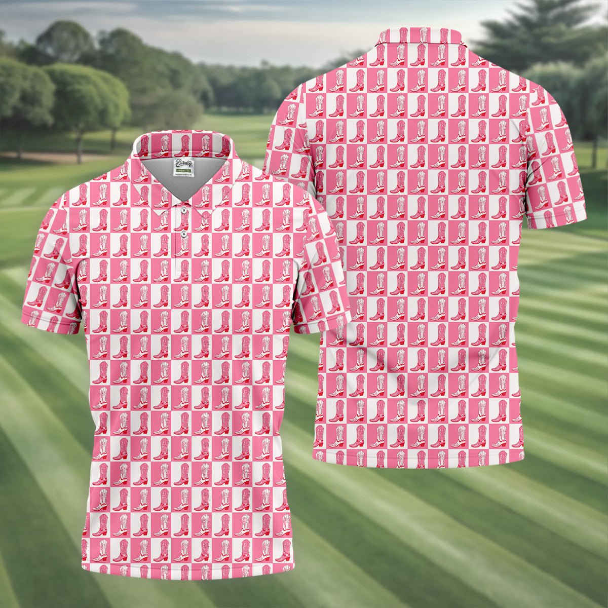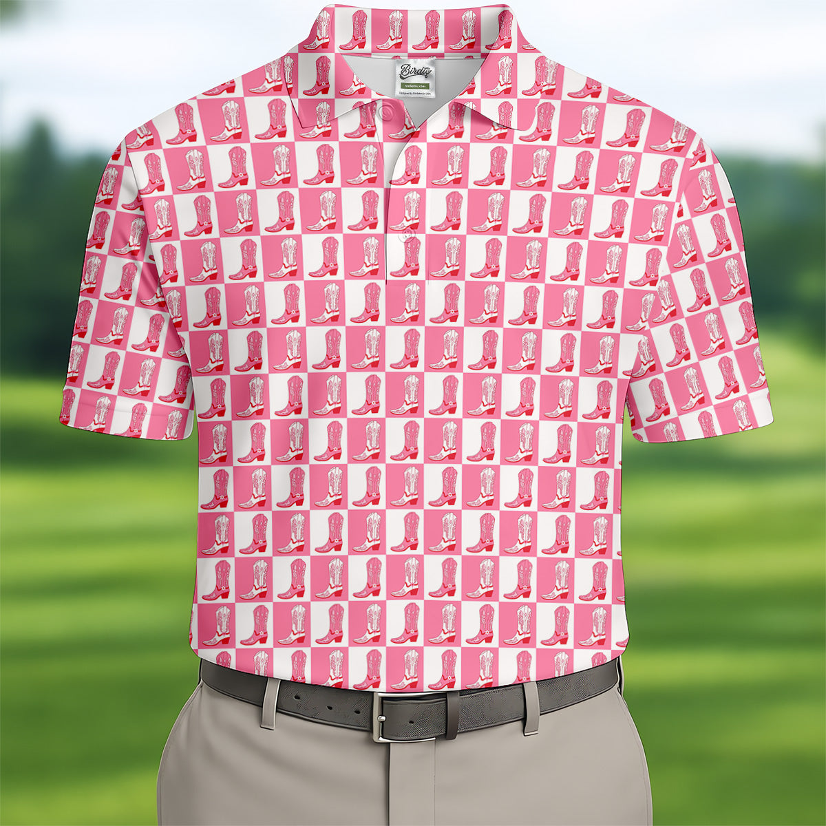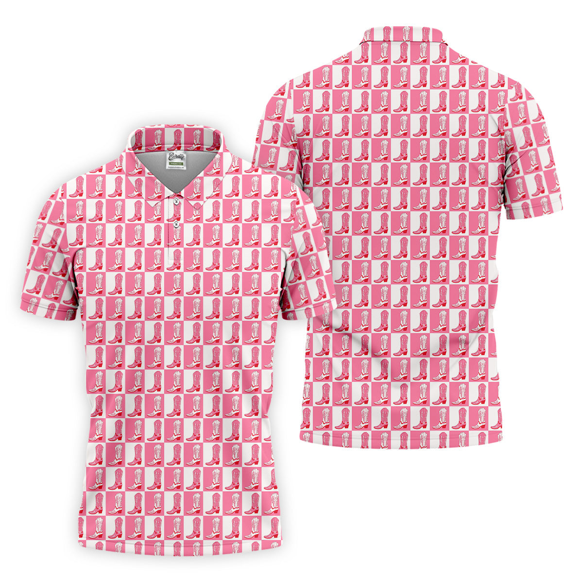 Western Cowboy Boot Men's Pink Golf Polo, Western Golf Shirt, Polo Shirts For Men, Golf Gift For Men