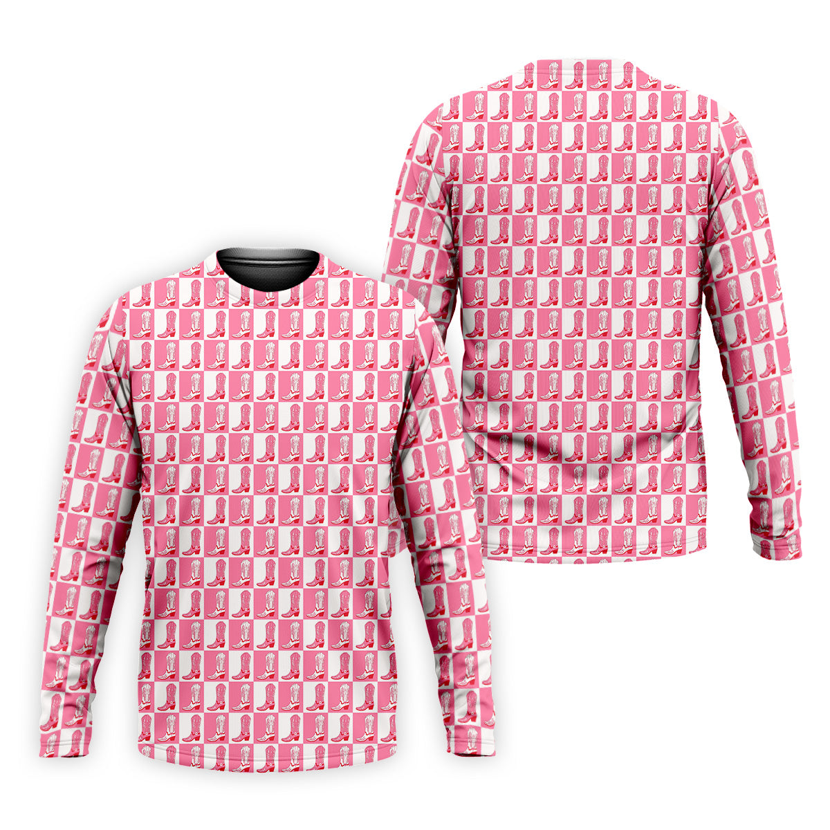 Meet the Western Cowboy Boot Men's Pink Golf Polo, Western Golf Shirt, Polo Shirts For Men, Golf Gift For Men – a shirt so bold it makes argyle cry in the corner. Designed for golfers who'd rather make a fashion statement than follow dress codes, this polo is your ticket to turning heads, raising eyebrows, and maybe distracting your buddies just enough to win a few holes. (We’re not saying it’s cheating... we’re saying it’s strategy.)