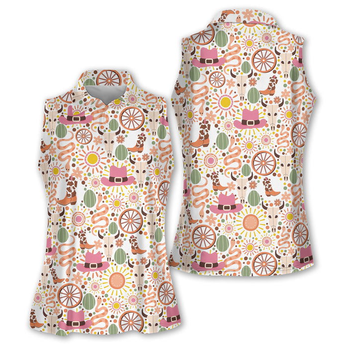 Western Golf Shirts Women, Western Pattern Womens Sleeveless Polo, Women's Long Sleeve Golf Shirts