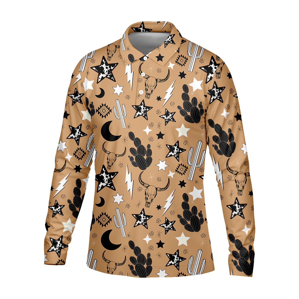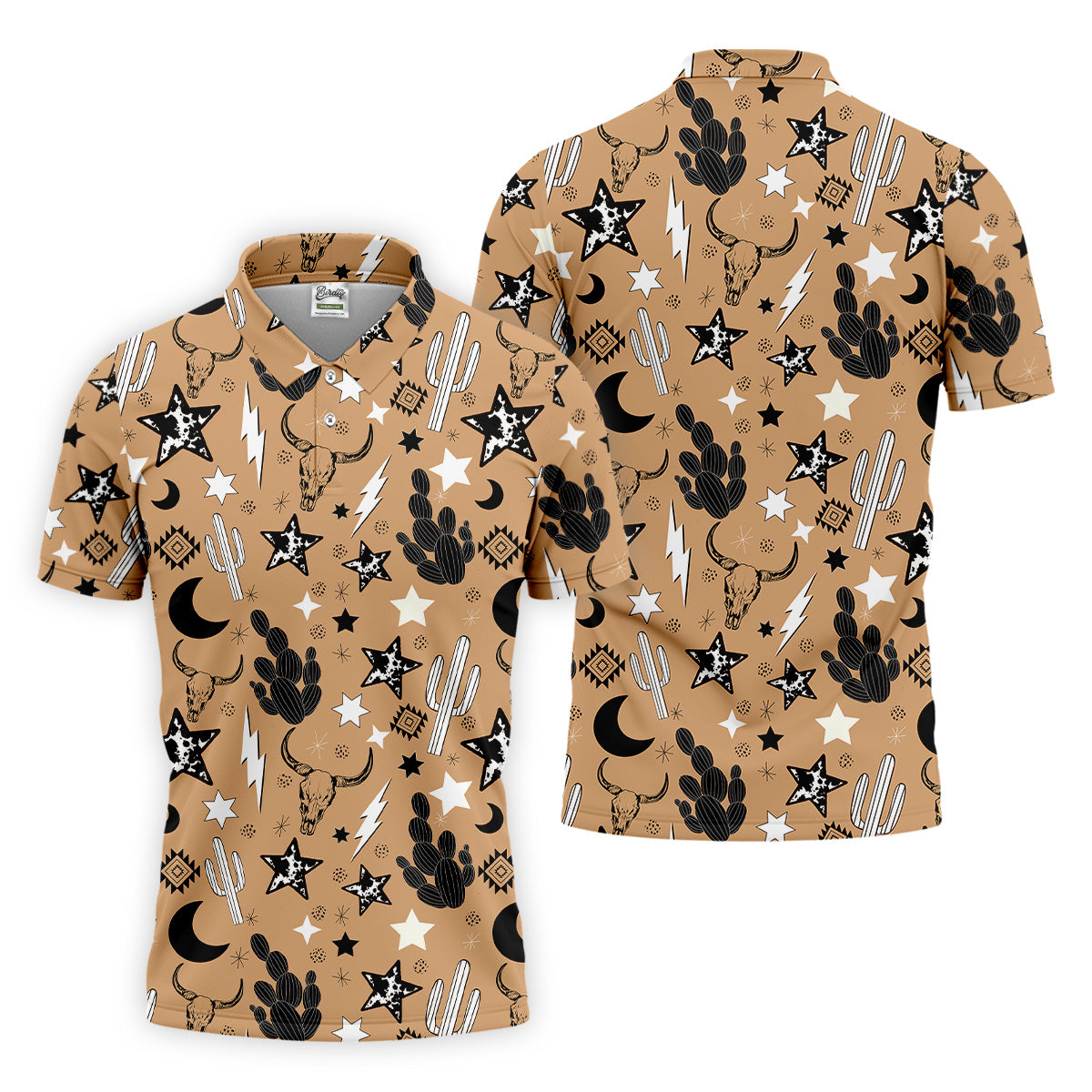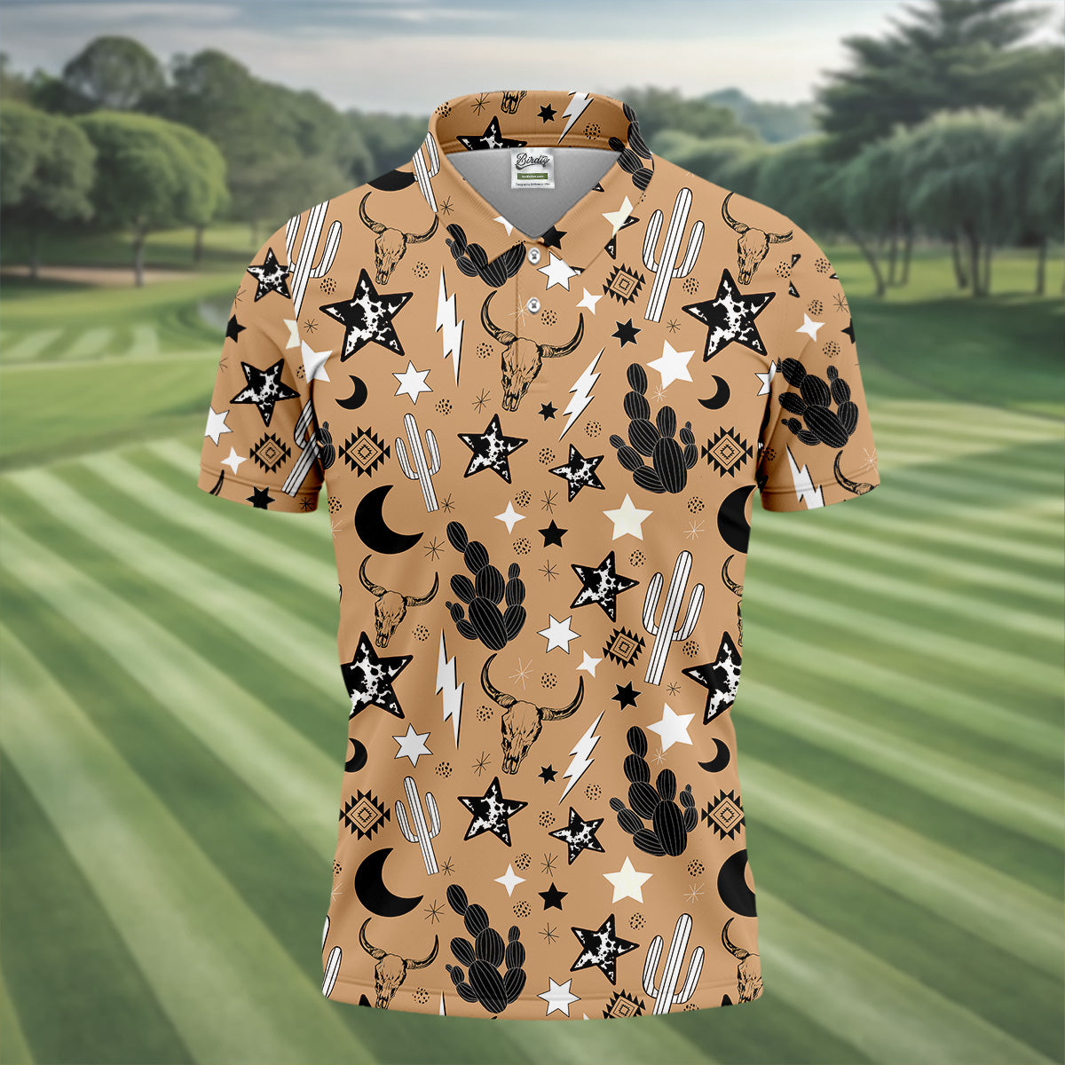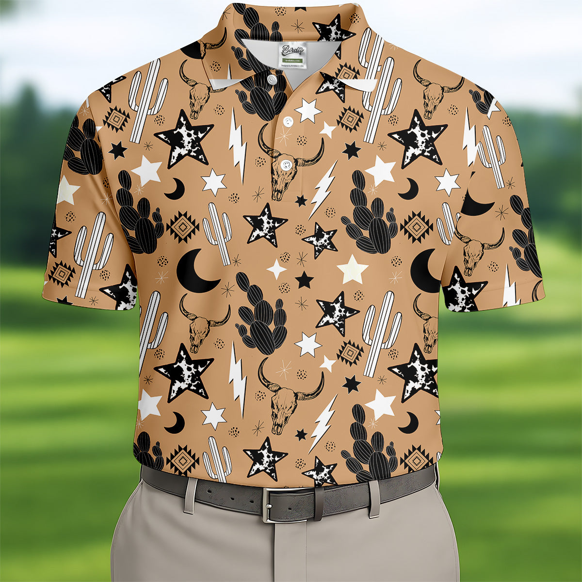 Western Star Seamless Pattern Golf Polos, Golf Shirts For Men, Golfing Apparel