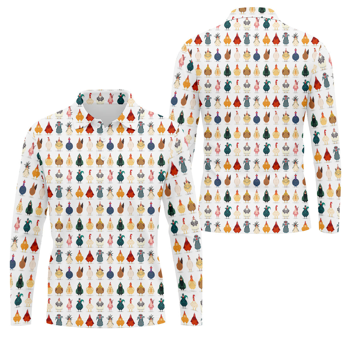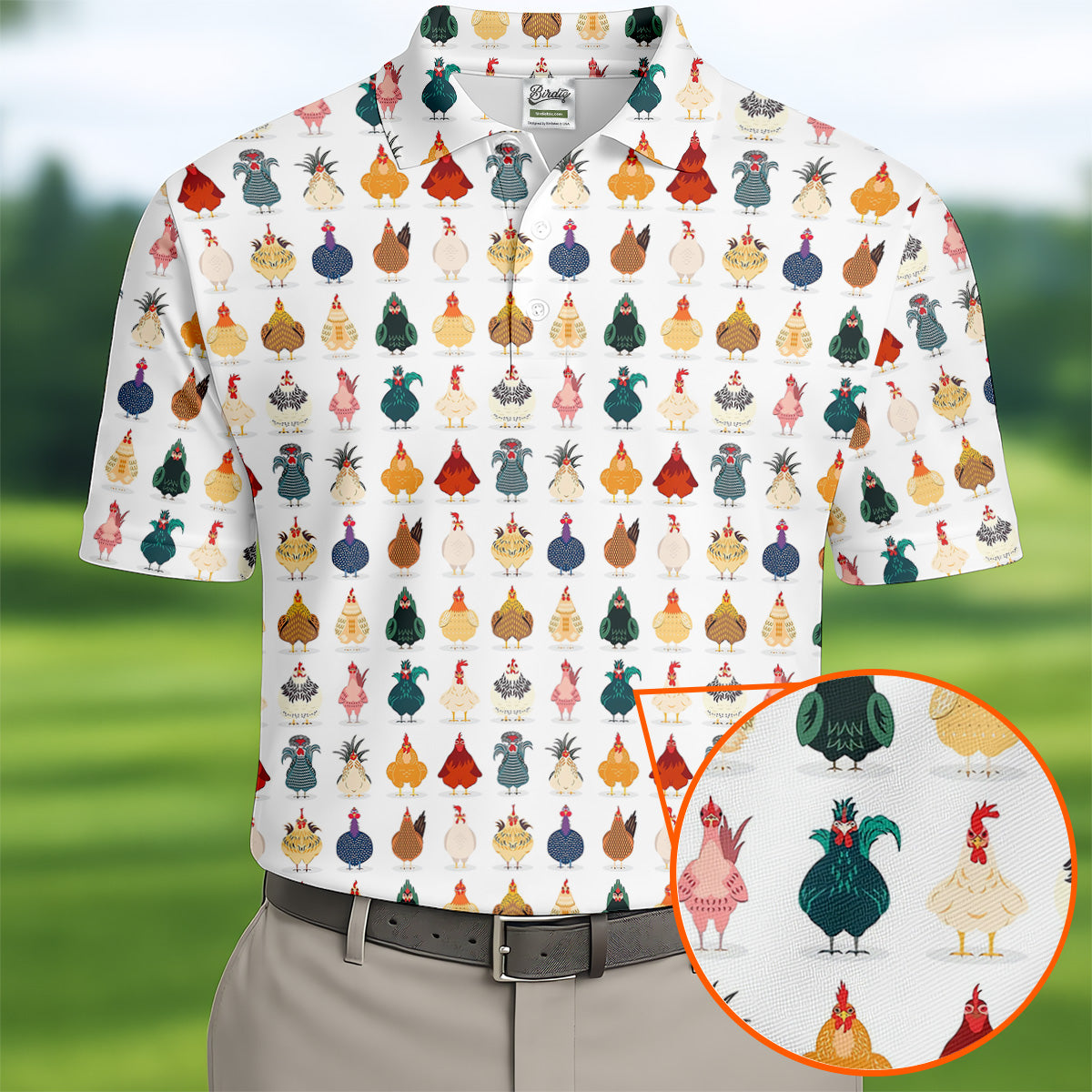 Whimsical Chicken Fun Golf Shirts For Men, Cute Golf Outfit, Polo Shirts For Men, Golfing Apparel
