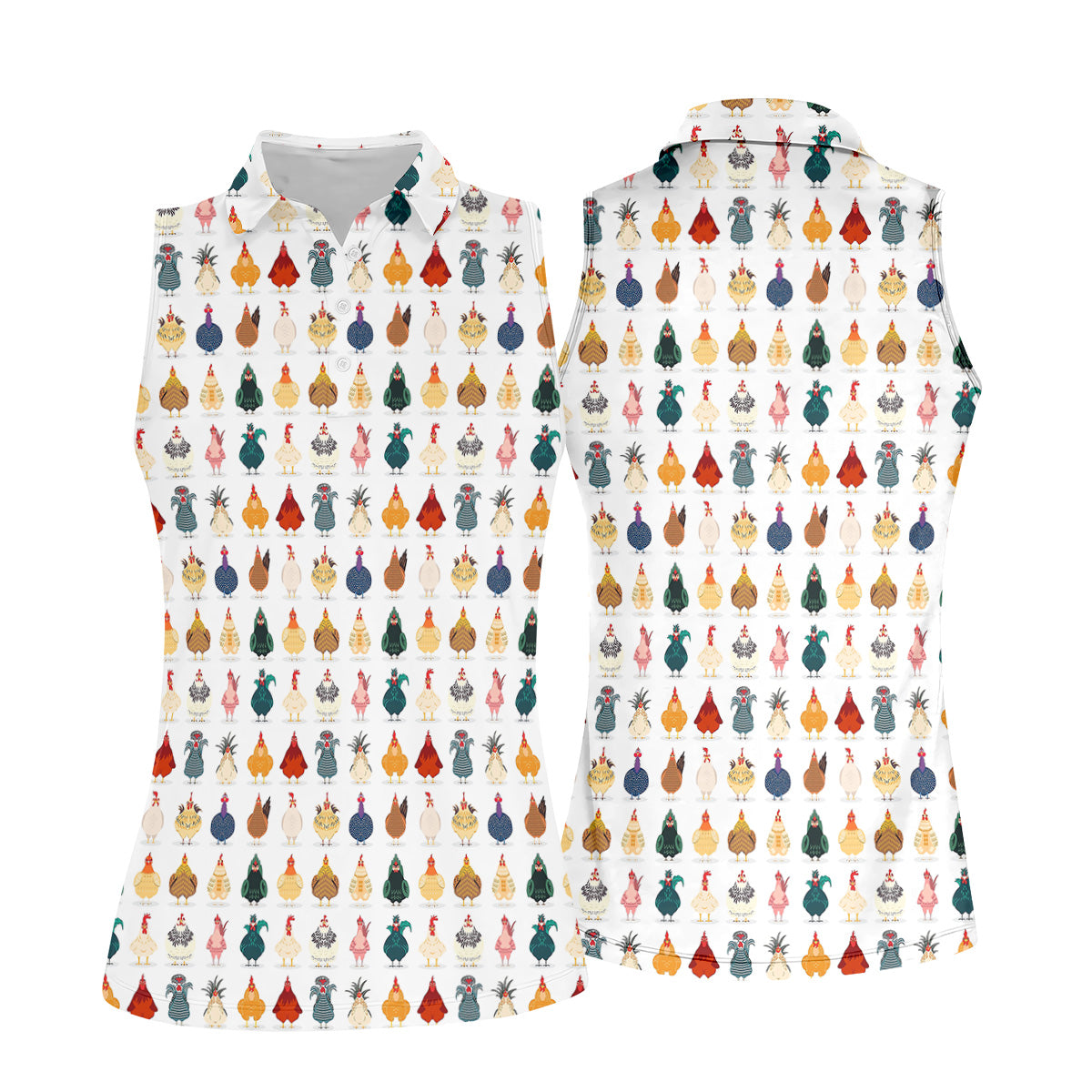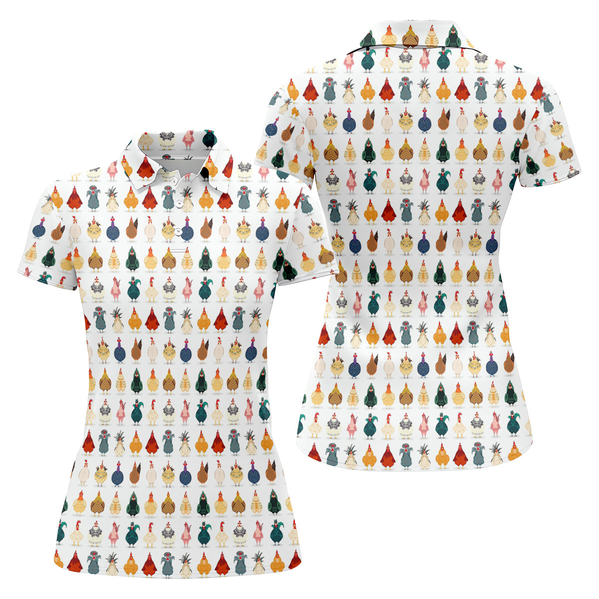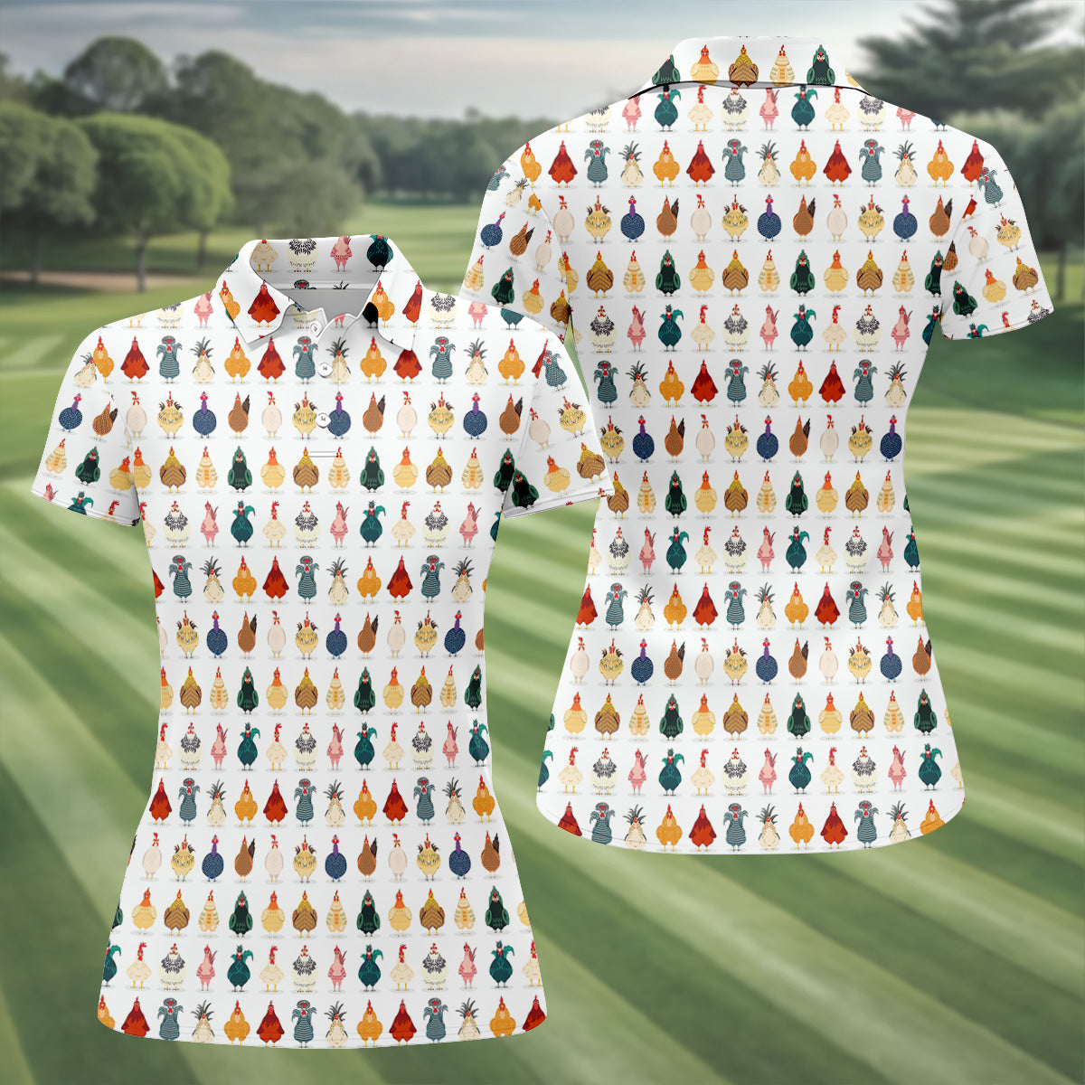 Whimsical Chicken Funny Golf Shirts Women, Cute Golf Outfit, White Polo Women, Ladies Golf Shirts