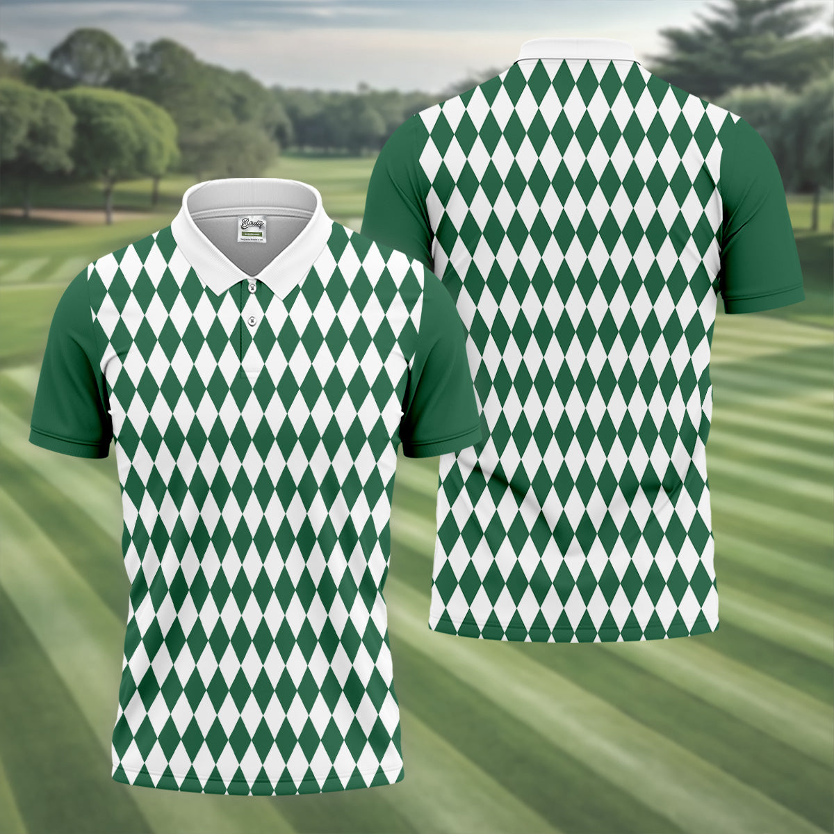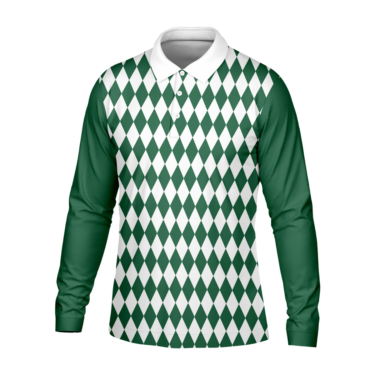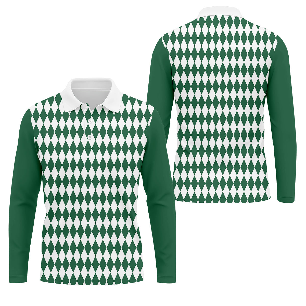 White And Green Argyle Pattern Men Polo, Polo Shirts For Men, Golf Gift For Men, Golfing Apparel