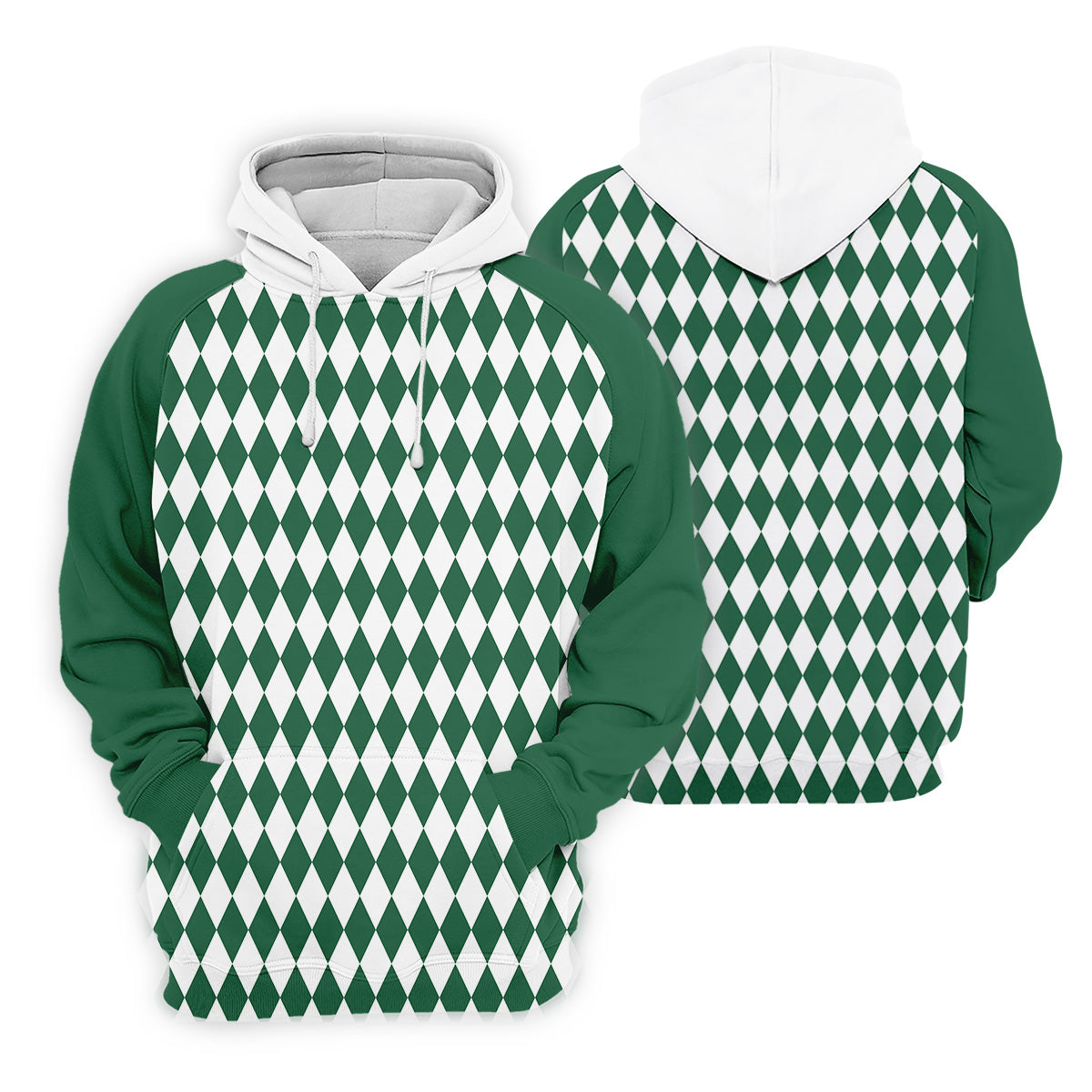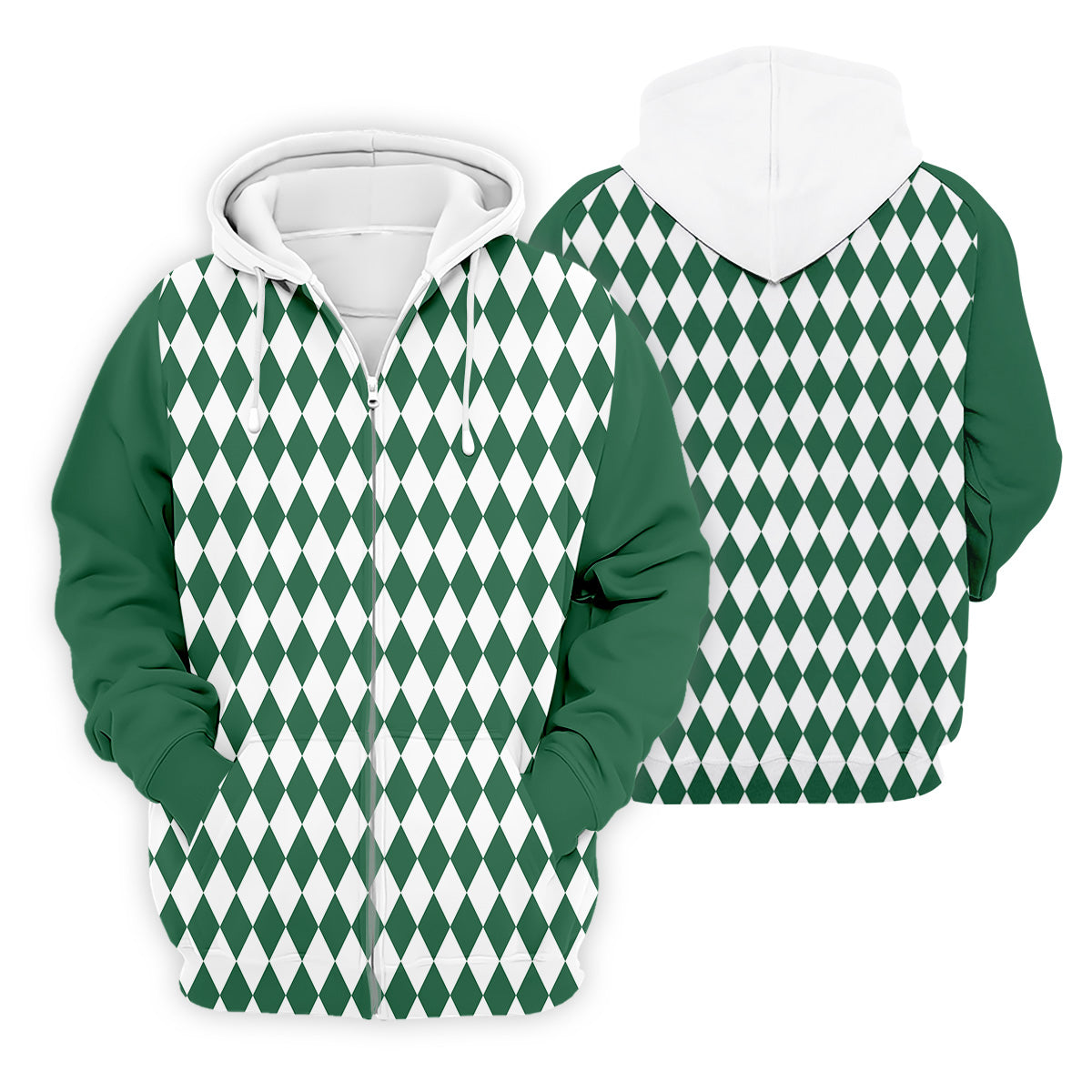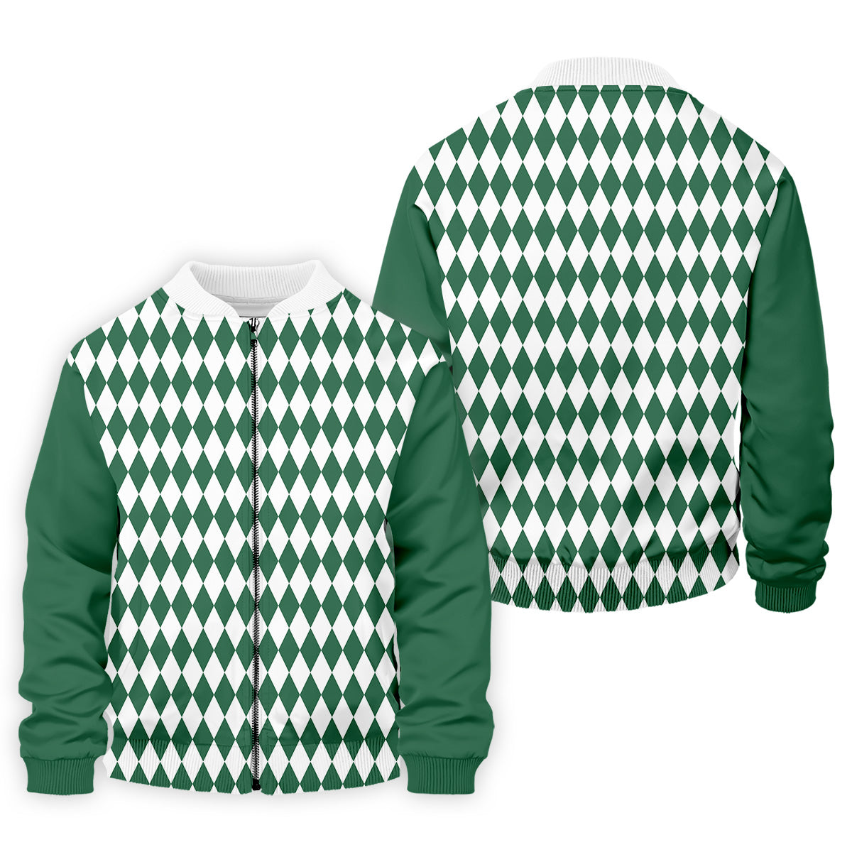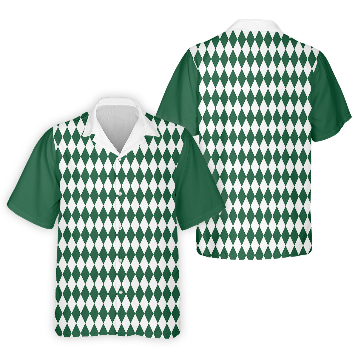 White And Green Argyle Pattern Men Polo, Polo Shirts For Men, Golf Gift For Men, Golfing Apparel