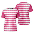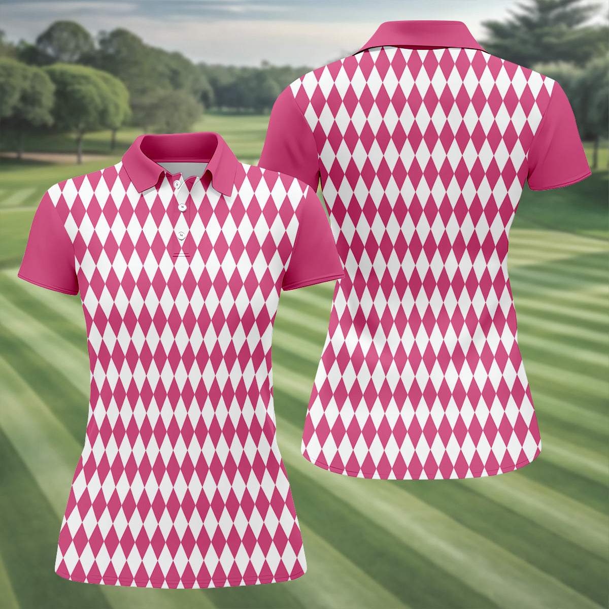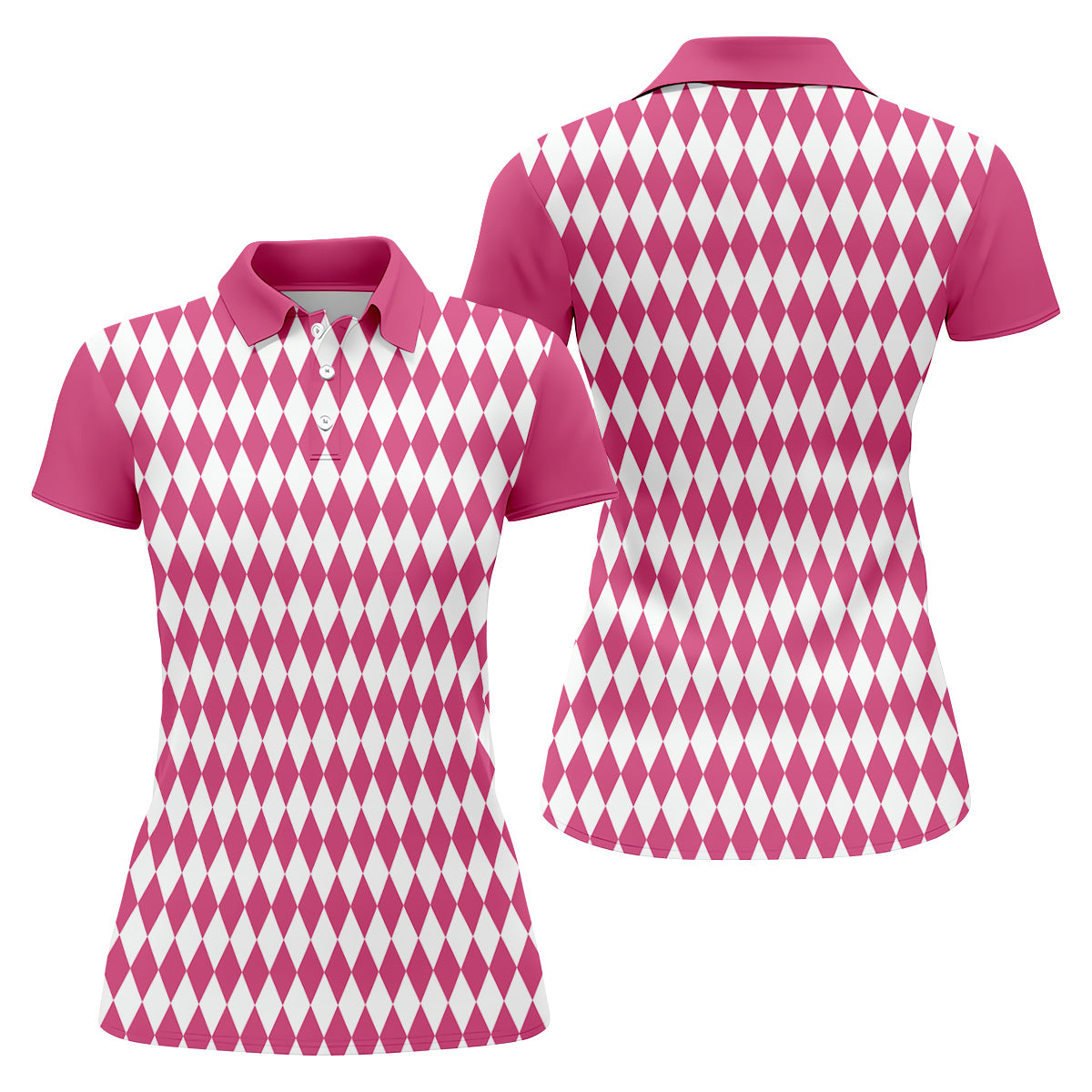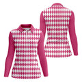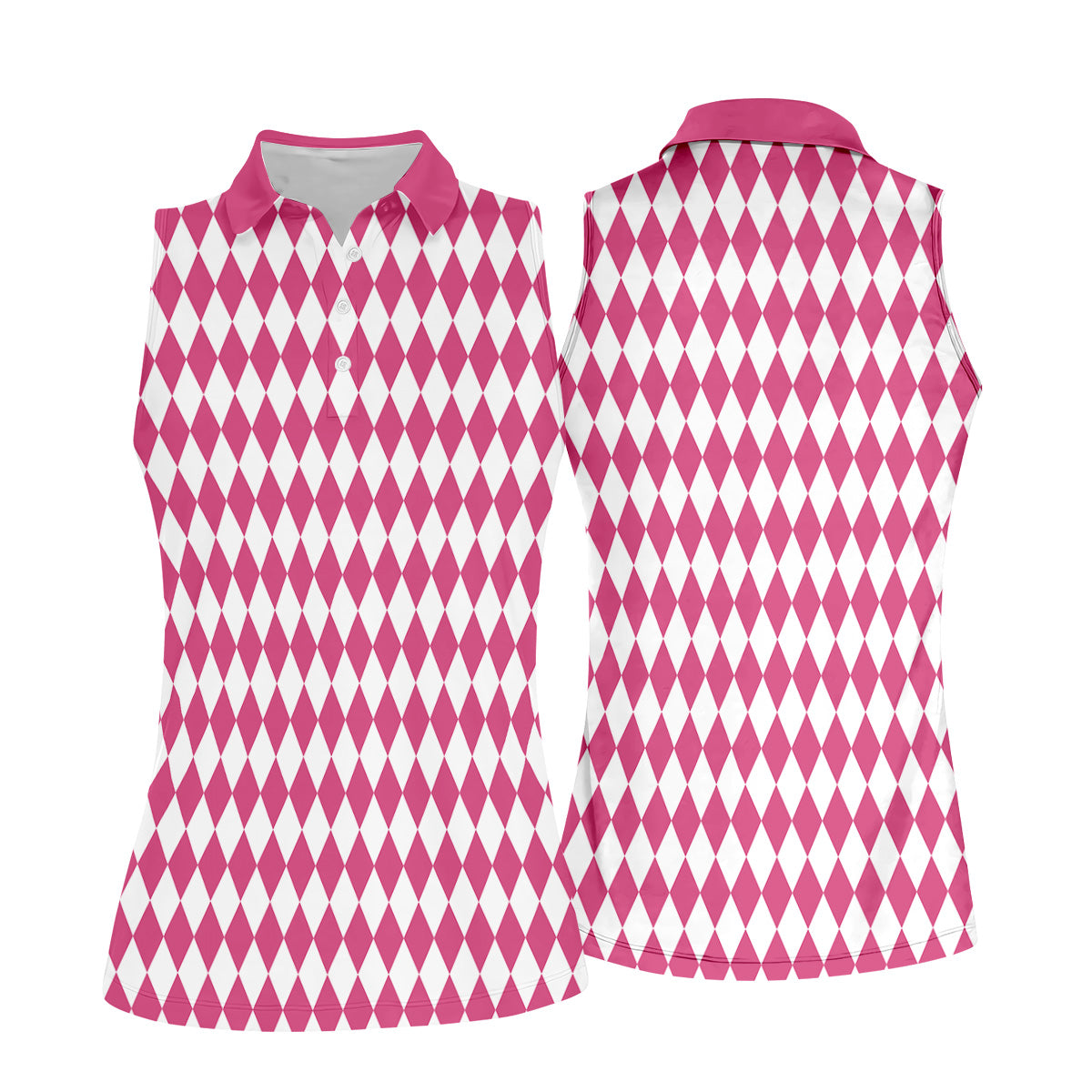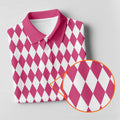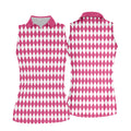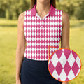White And Pink Argyle Pattern Women's Golf Shirts, Ladies Sleeveless Polo, Ladies Golf Shirts