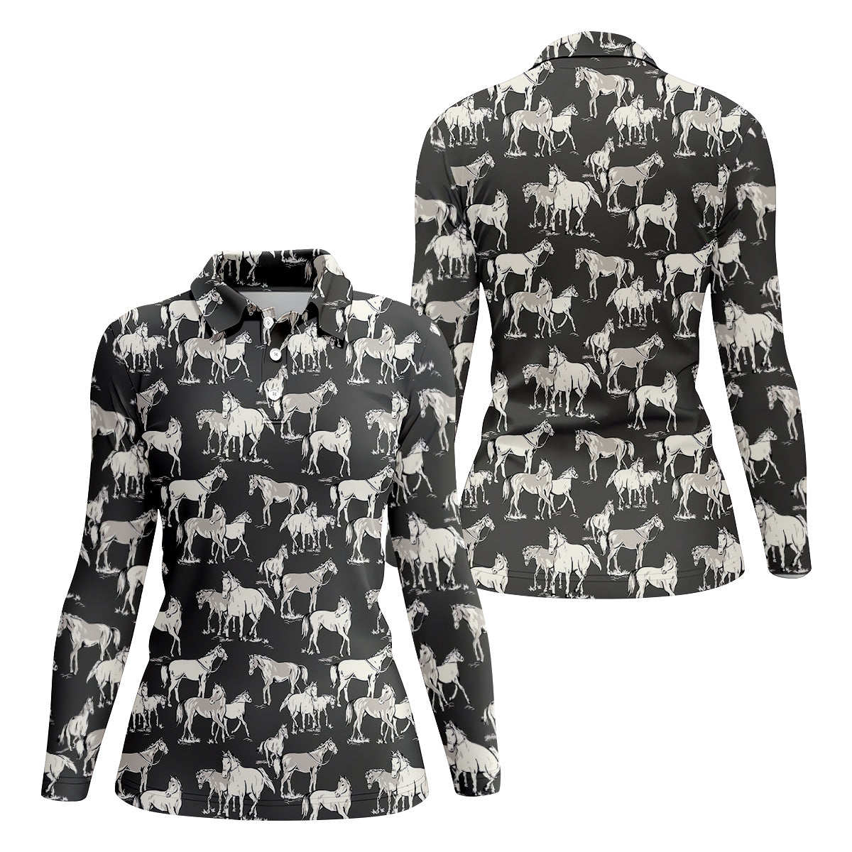 Wild Horse Seamless Pattern Women Golf Top, Golf Shirt For Women, Ladies Golf Polos