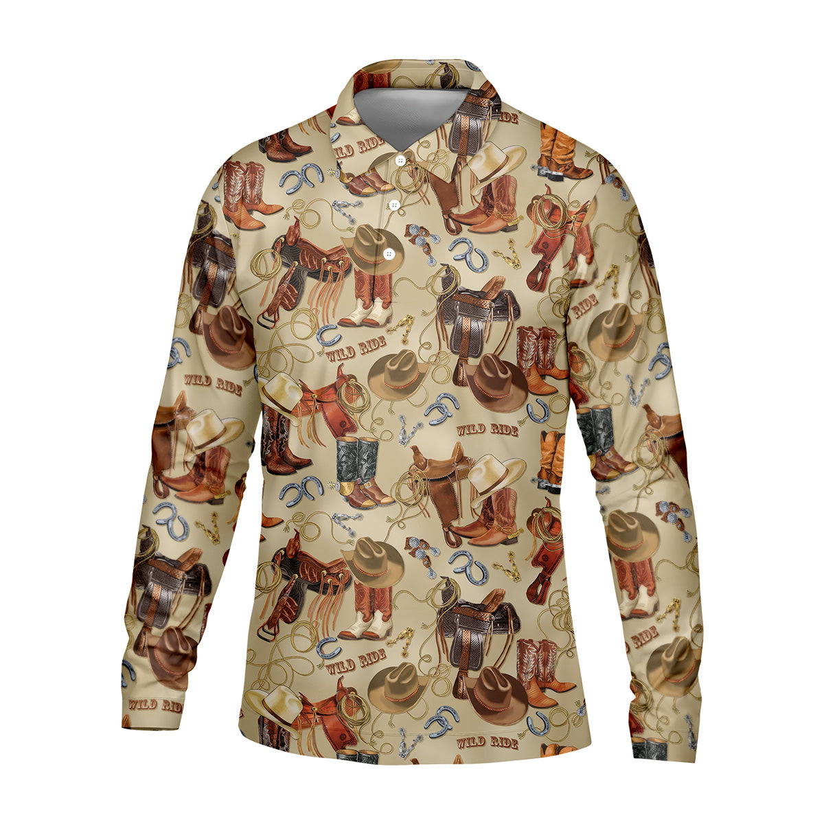 Meet the Wild Ride Western Ways Golf Shirt, Golf Tops For Men, Golf Polo Shirt, Golfing Apparel – a shirt so bold it makes argyle cry in the corner. Designed for golfers who'd rather make a fashion statement than follow dress codes, this polo is your ticket to turning heads, raising eyebrows, and maybe distracting your buddies just enough to win a few holes. (We’re not saying it’s cheating... we’re saying it’s strategy.)
