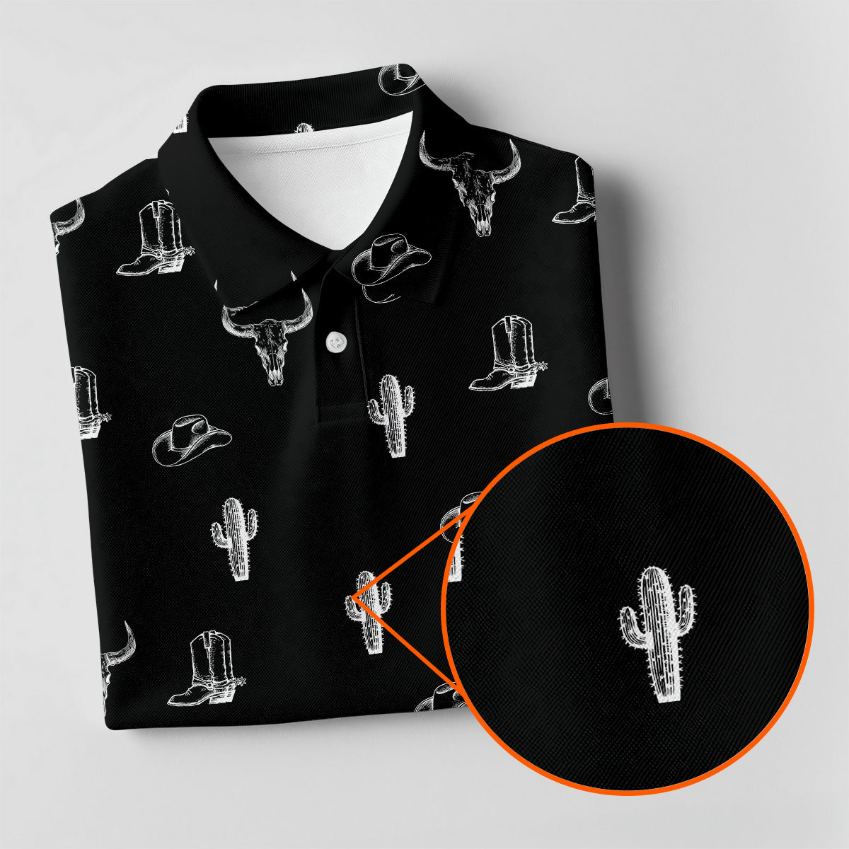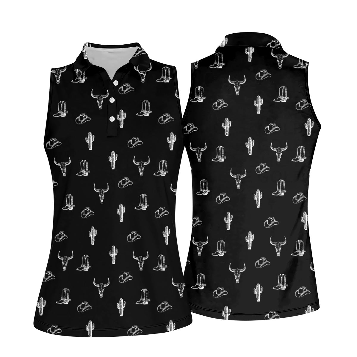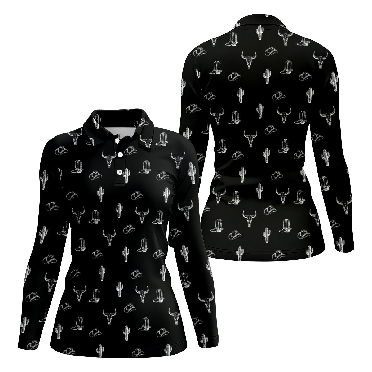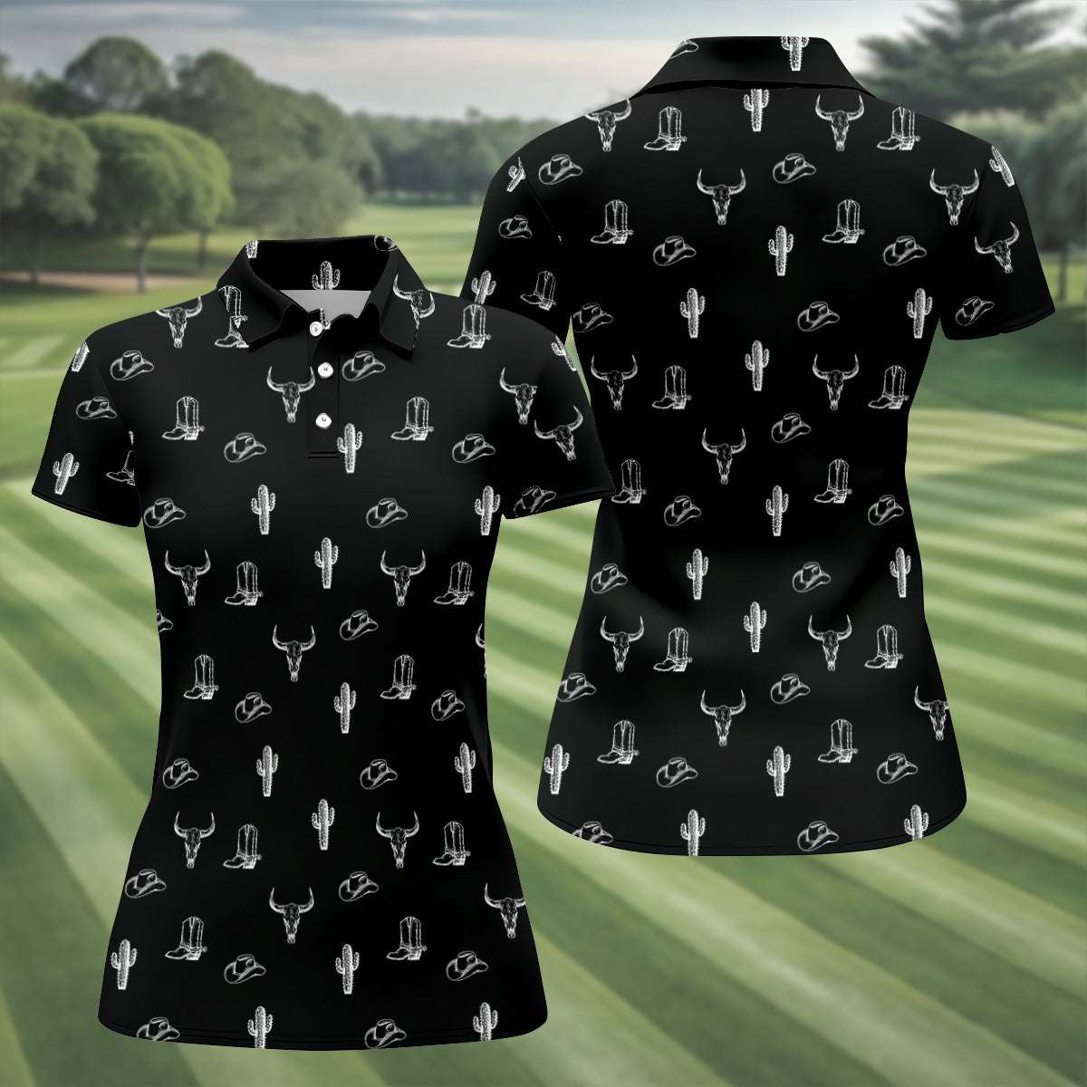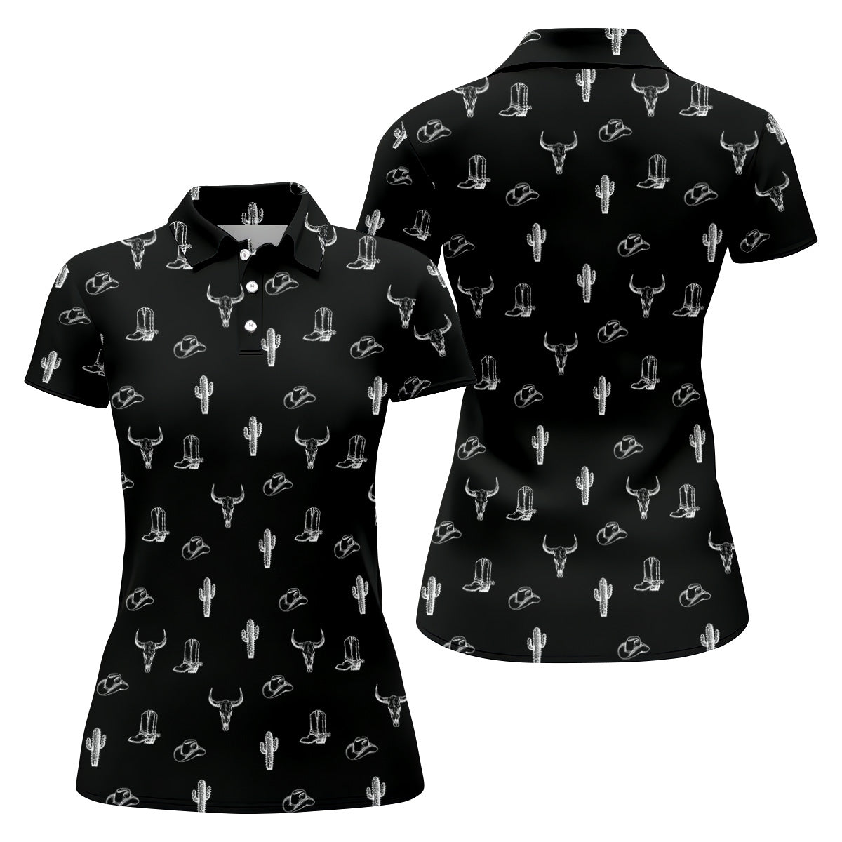 Wild West Cactus Black Western Golf Shirts Women, Unique Gift For Golfer, Ladies Golf Shirts