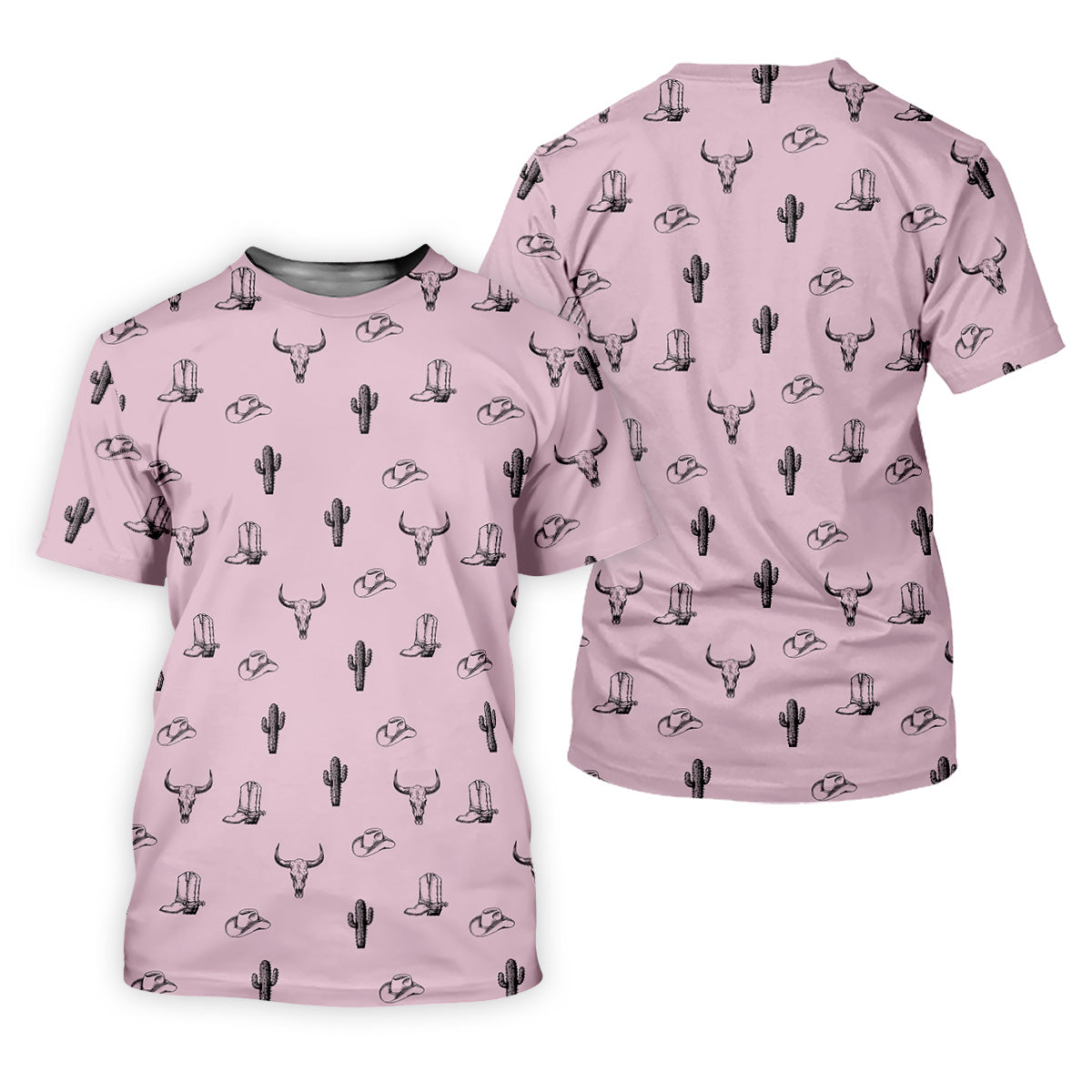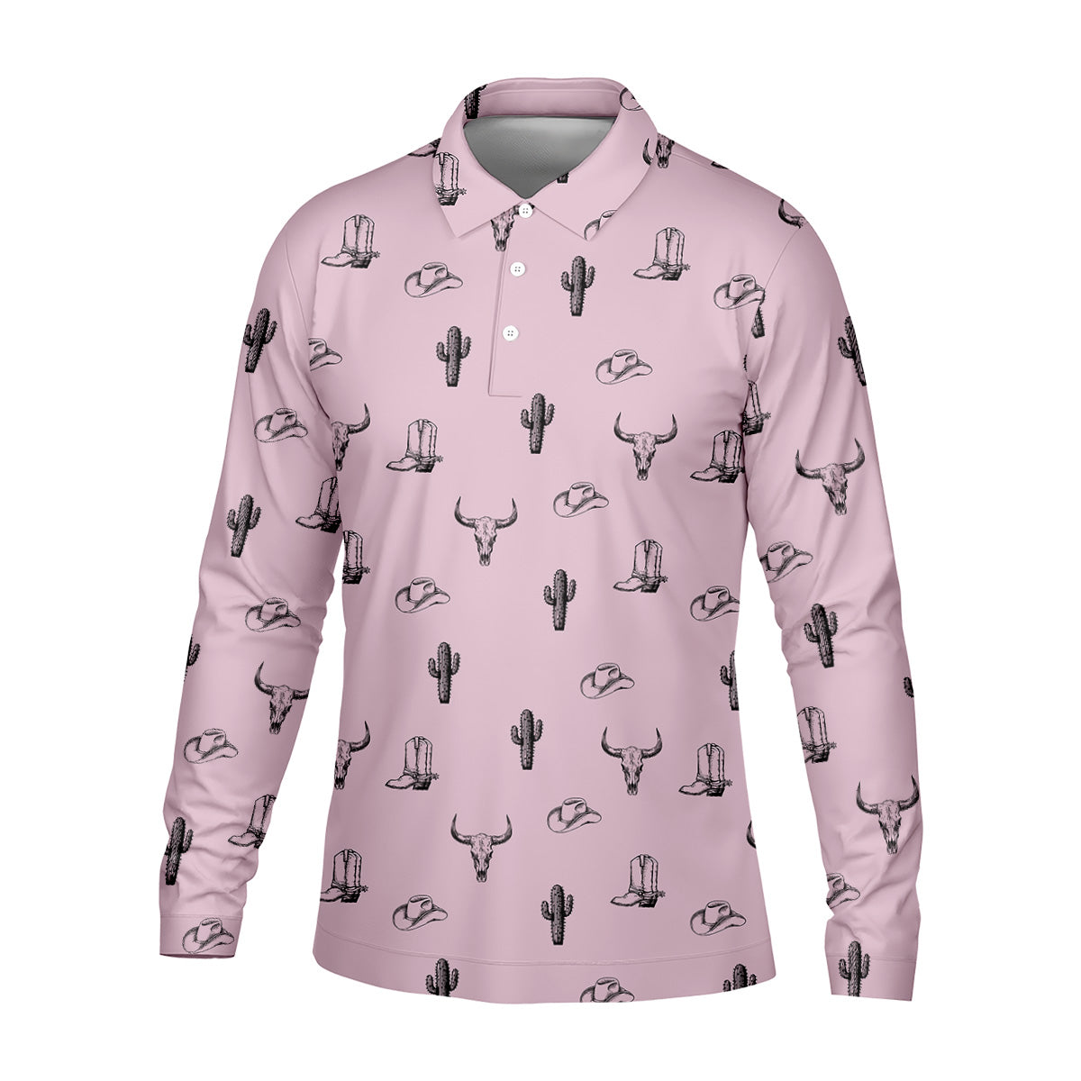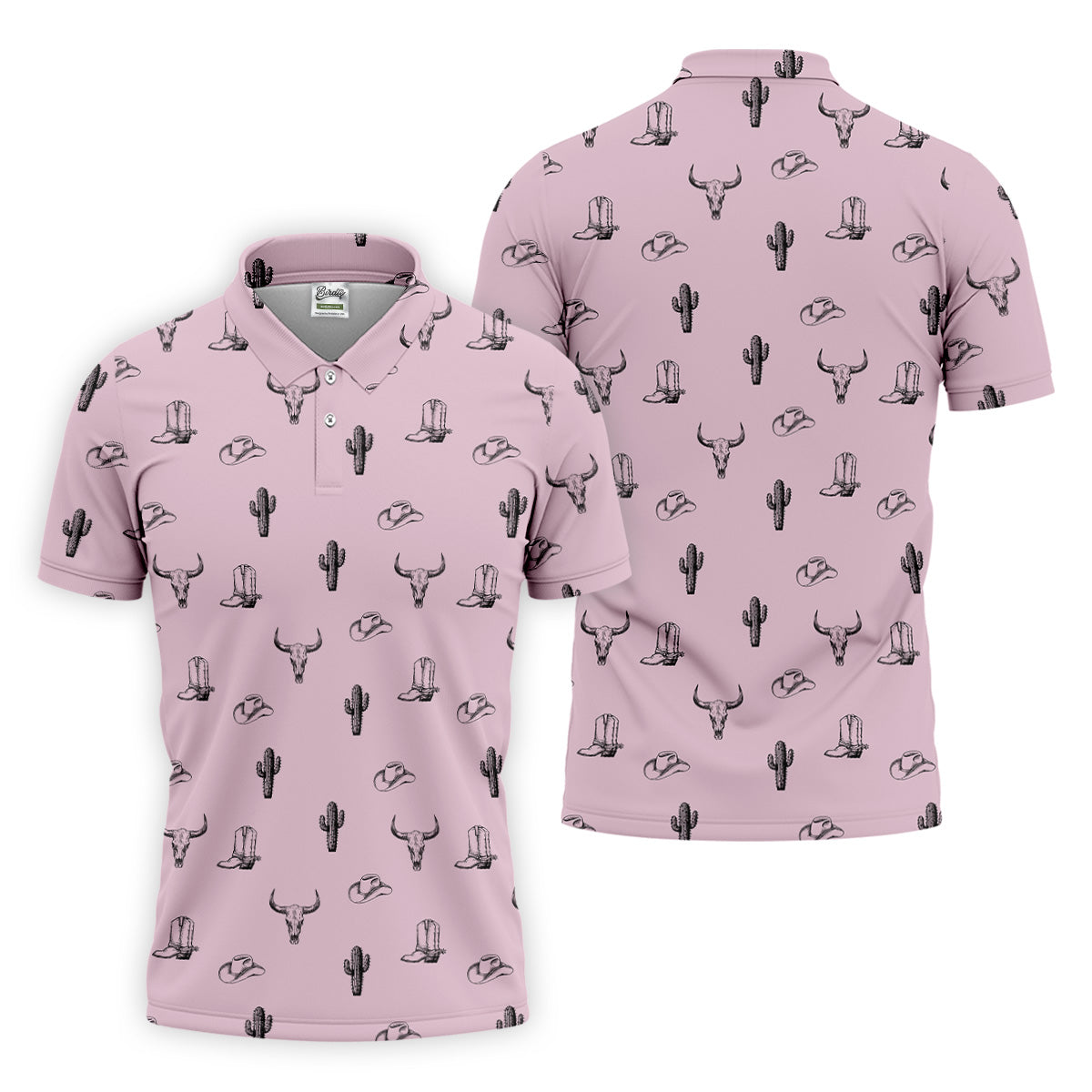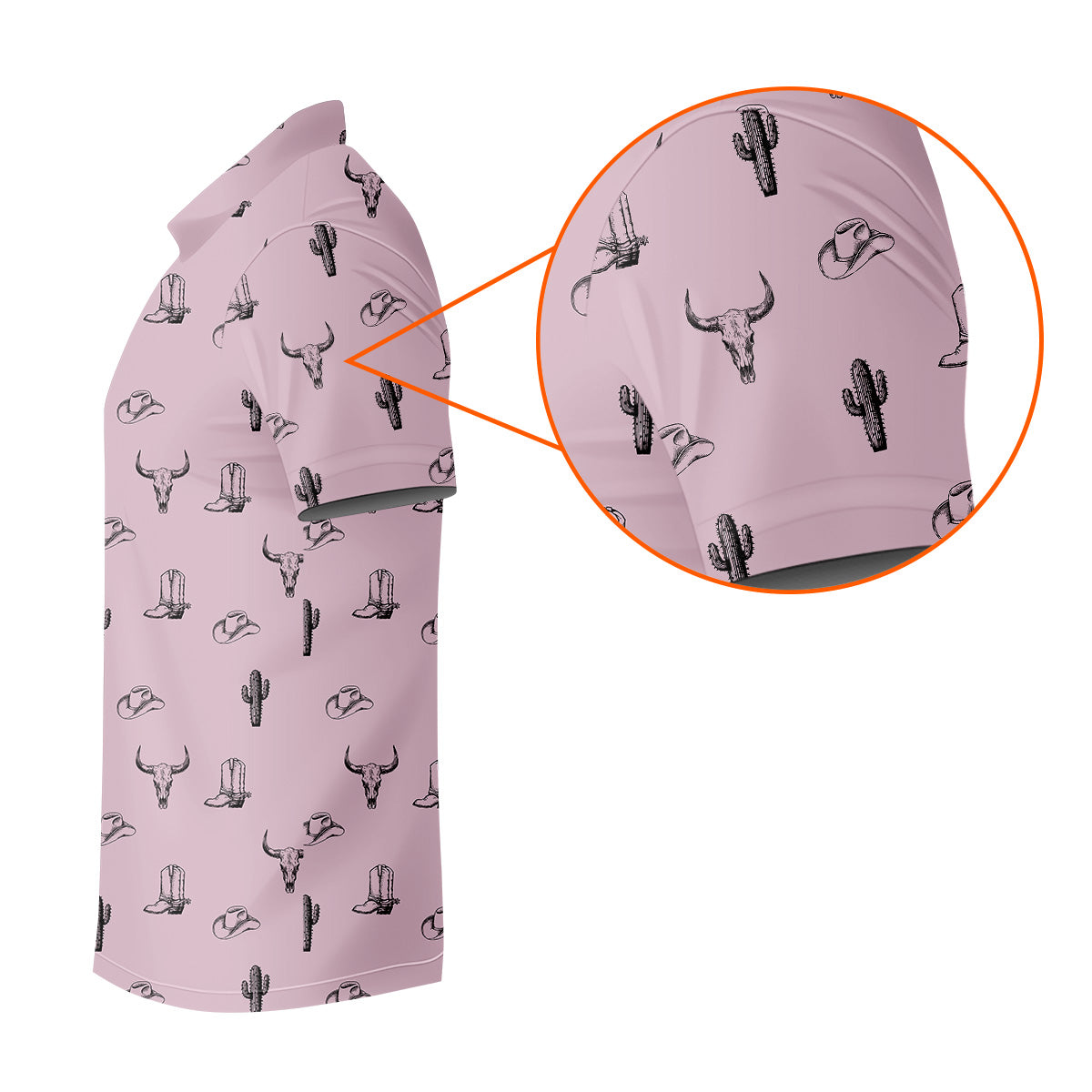 Wild West Cactus Pink Lavender Western Golf Shirt, Golf Tops For Men, Polo Shirts For Men, Golfing Apparel