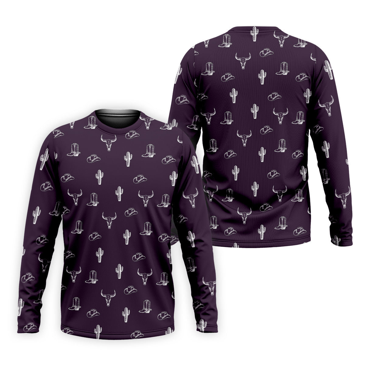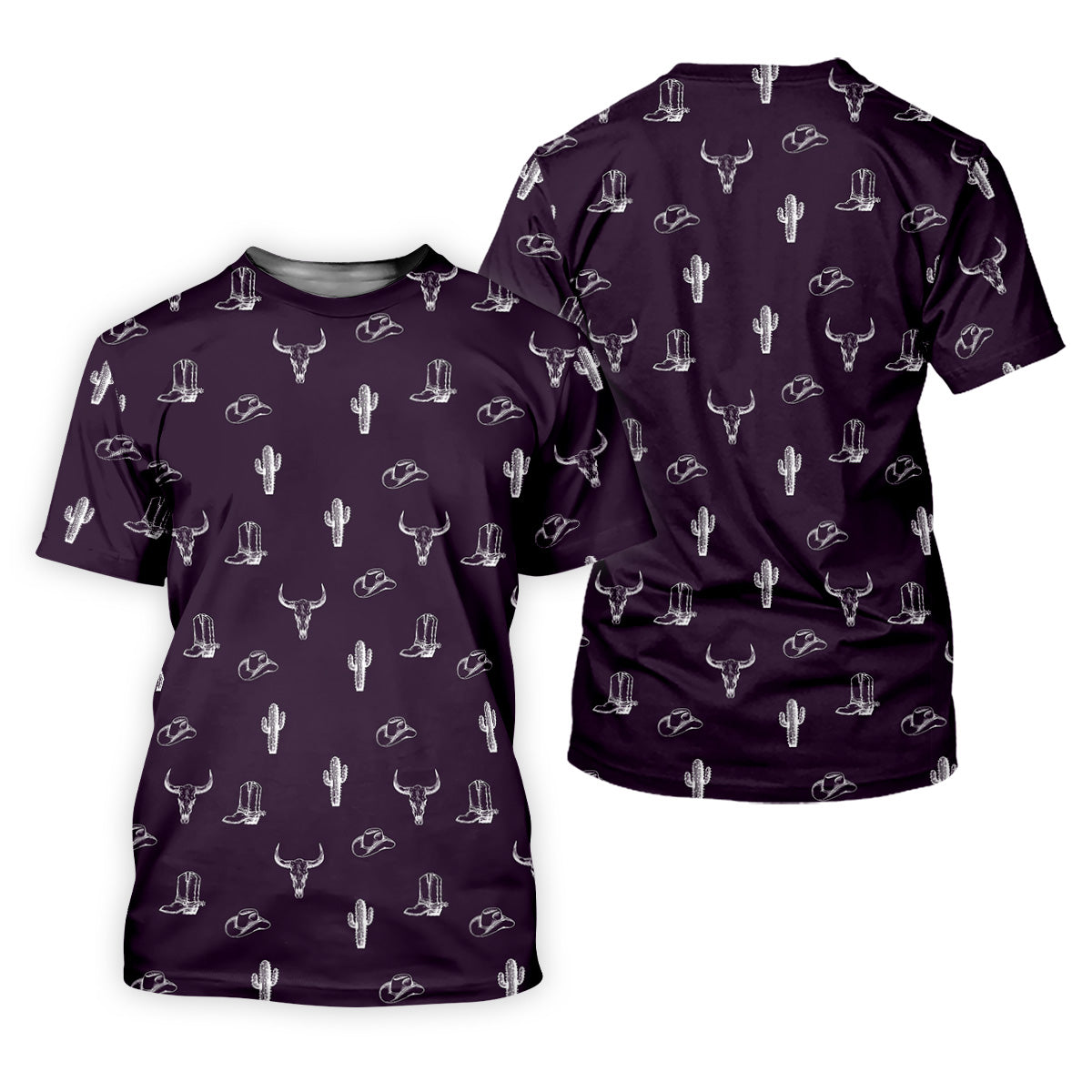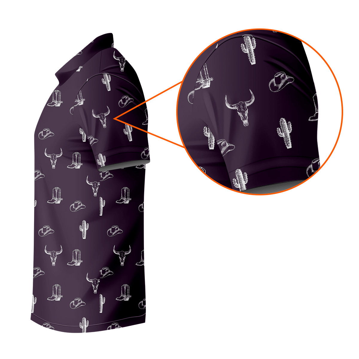 Wild West Cactus Purple Western Golf Shirt, Golf Tops For Men, Polo Shirts For Men, Golfing Apparel