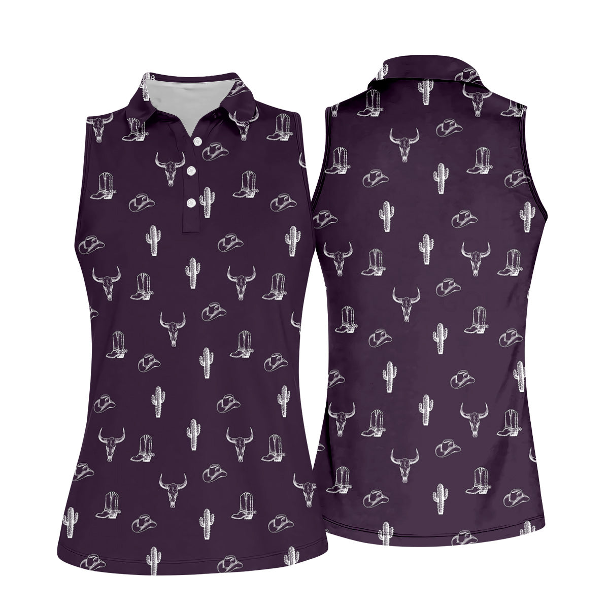 Wild West Cactus Purple Western Golf Shirts Women, Unique Gift For Golfer, Ladies Golf Shirts