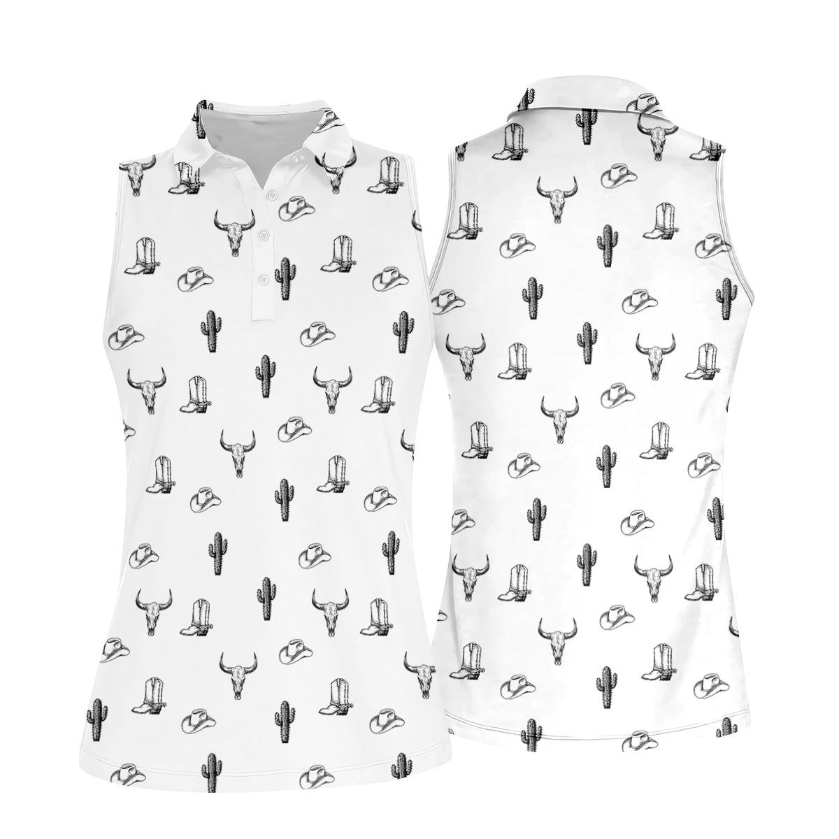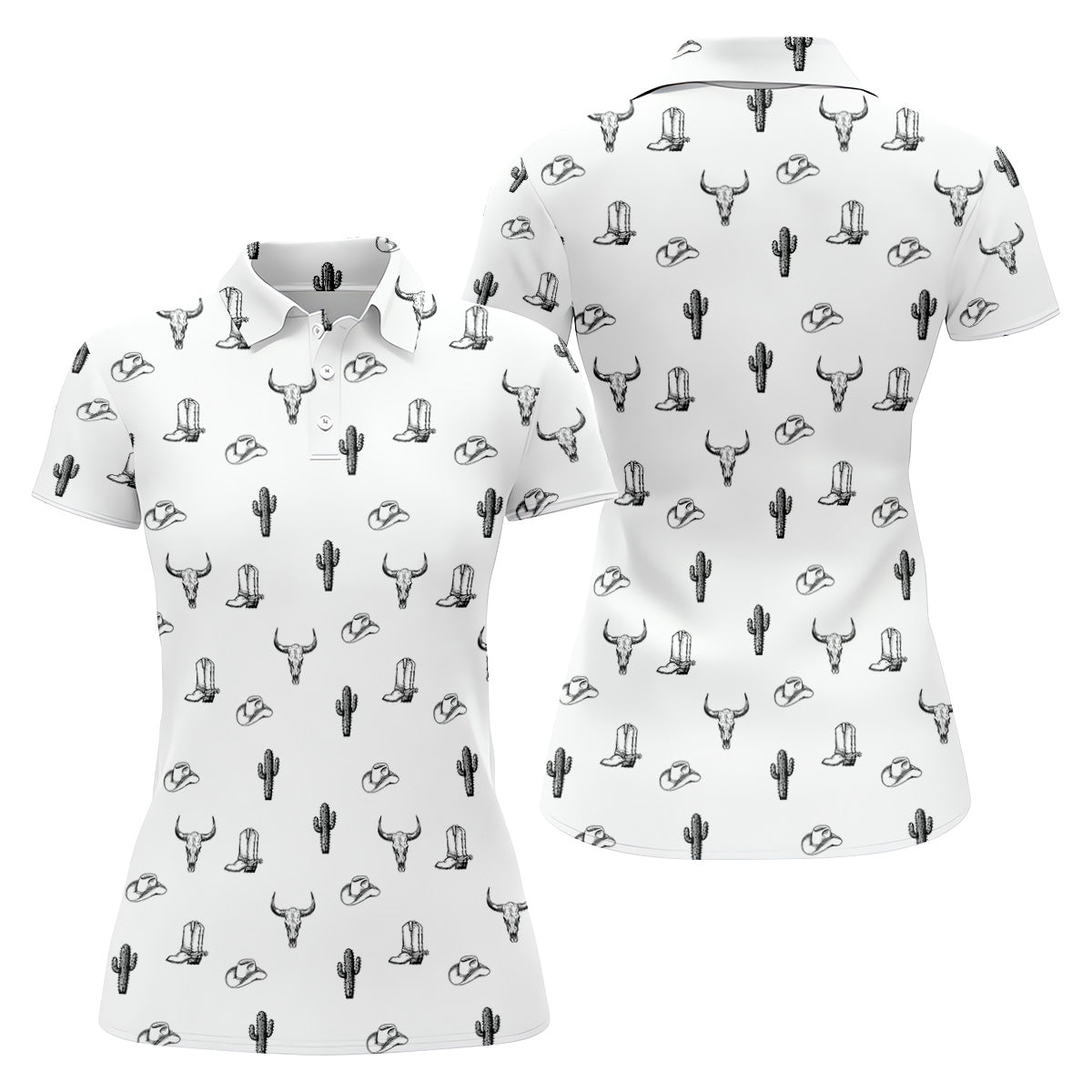 Wild West Cactus White Western Golf Shirts Women, Unique Gift For Golfer, Ladies Golf Shirts