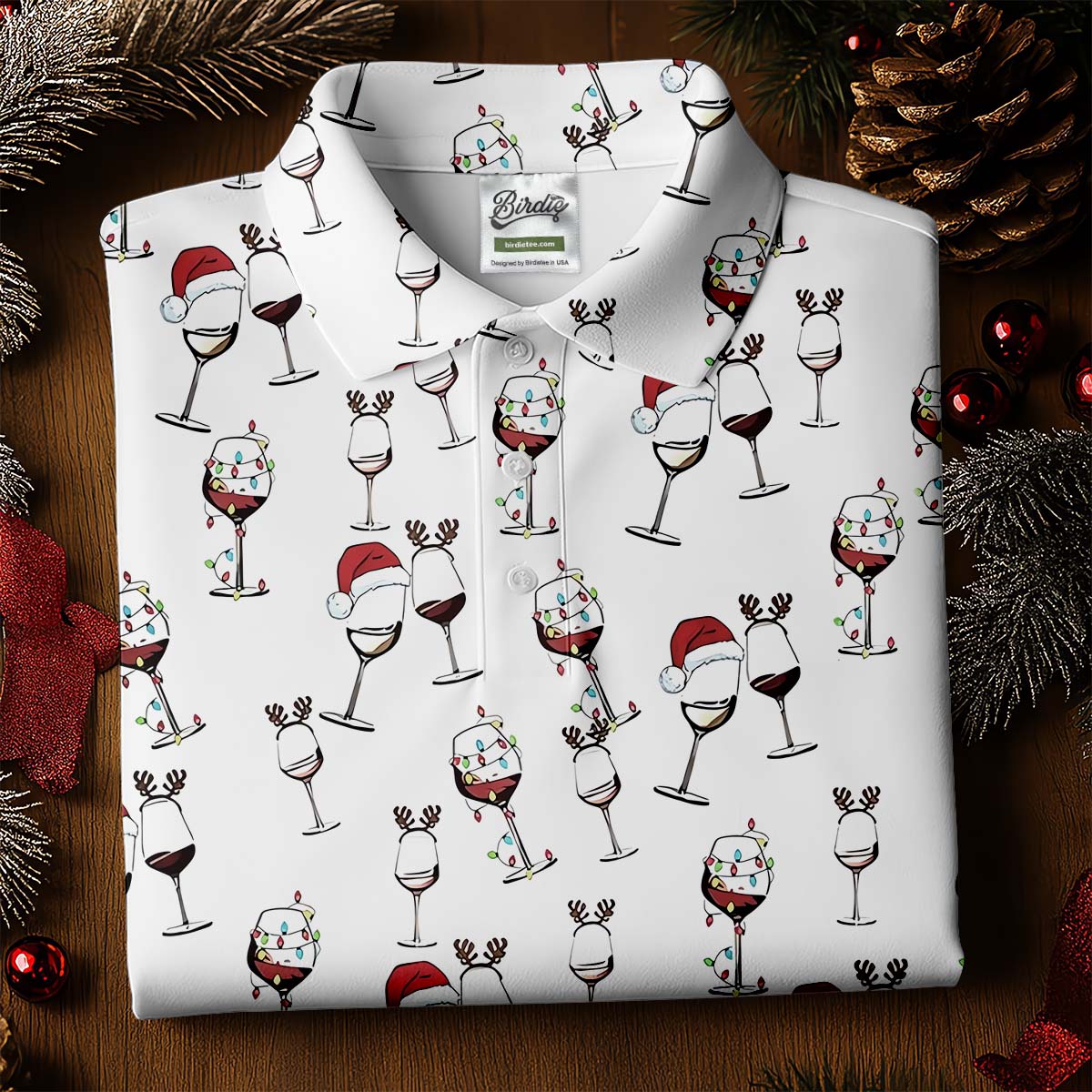 Wine Glass Christmas Lighting Golf Tops For Men, Christmas Golf Shirt, Polo Shirts For Men