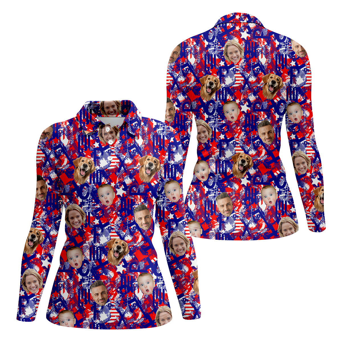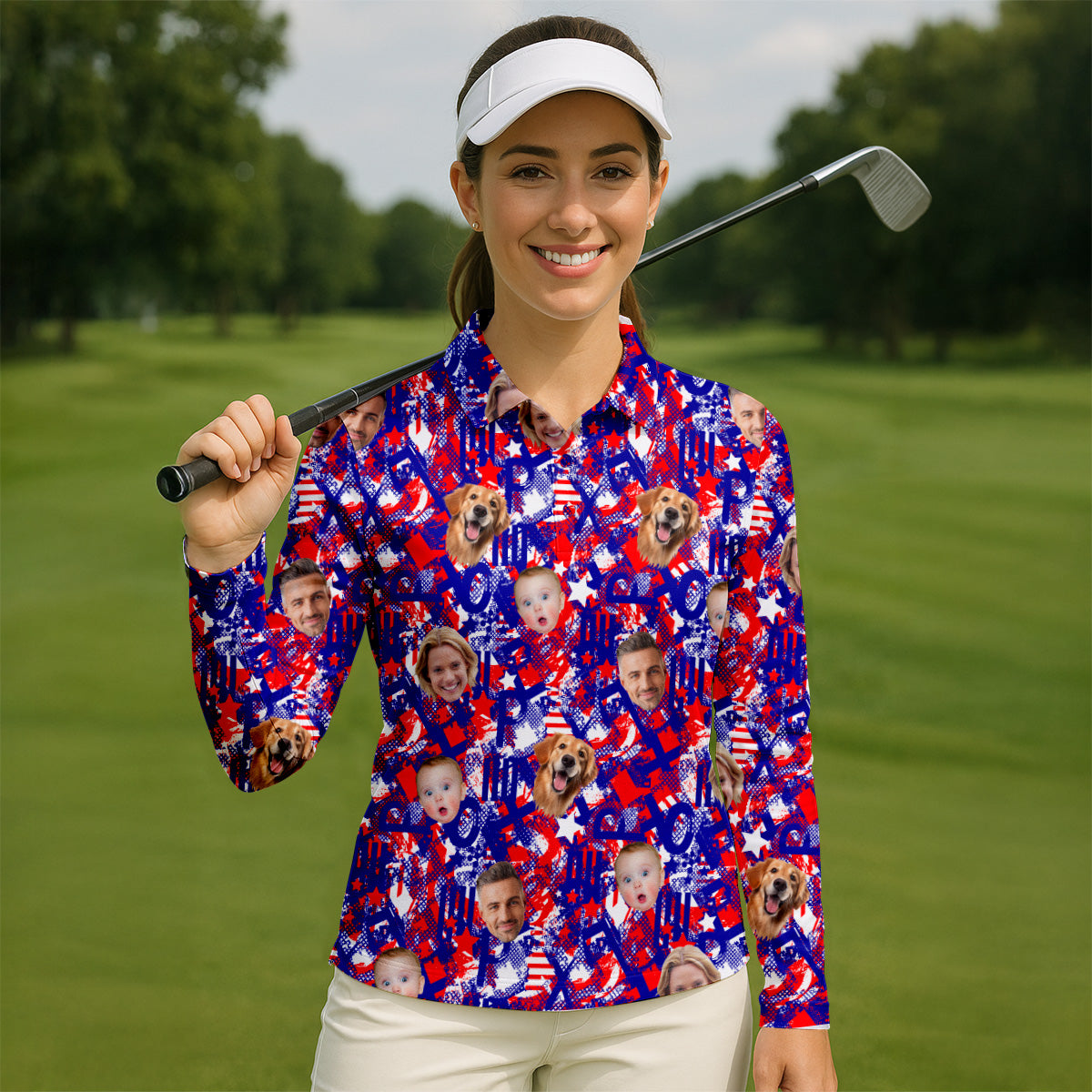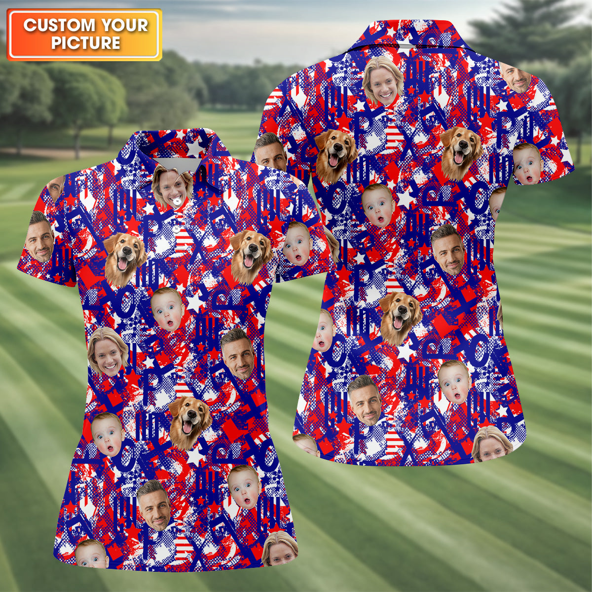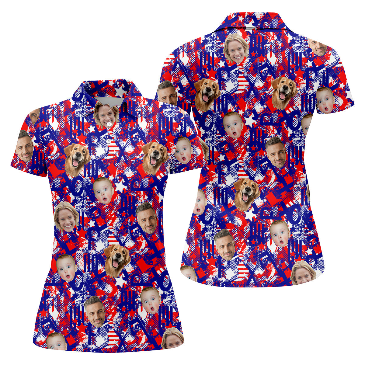 Custom Family Golf Shirt, America Flag Golf Shirt For Ladies, Women's Golf Polo Shirt, Patriotic Golf Shirt