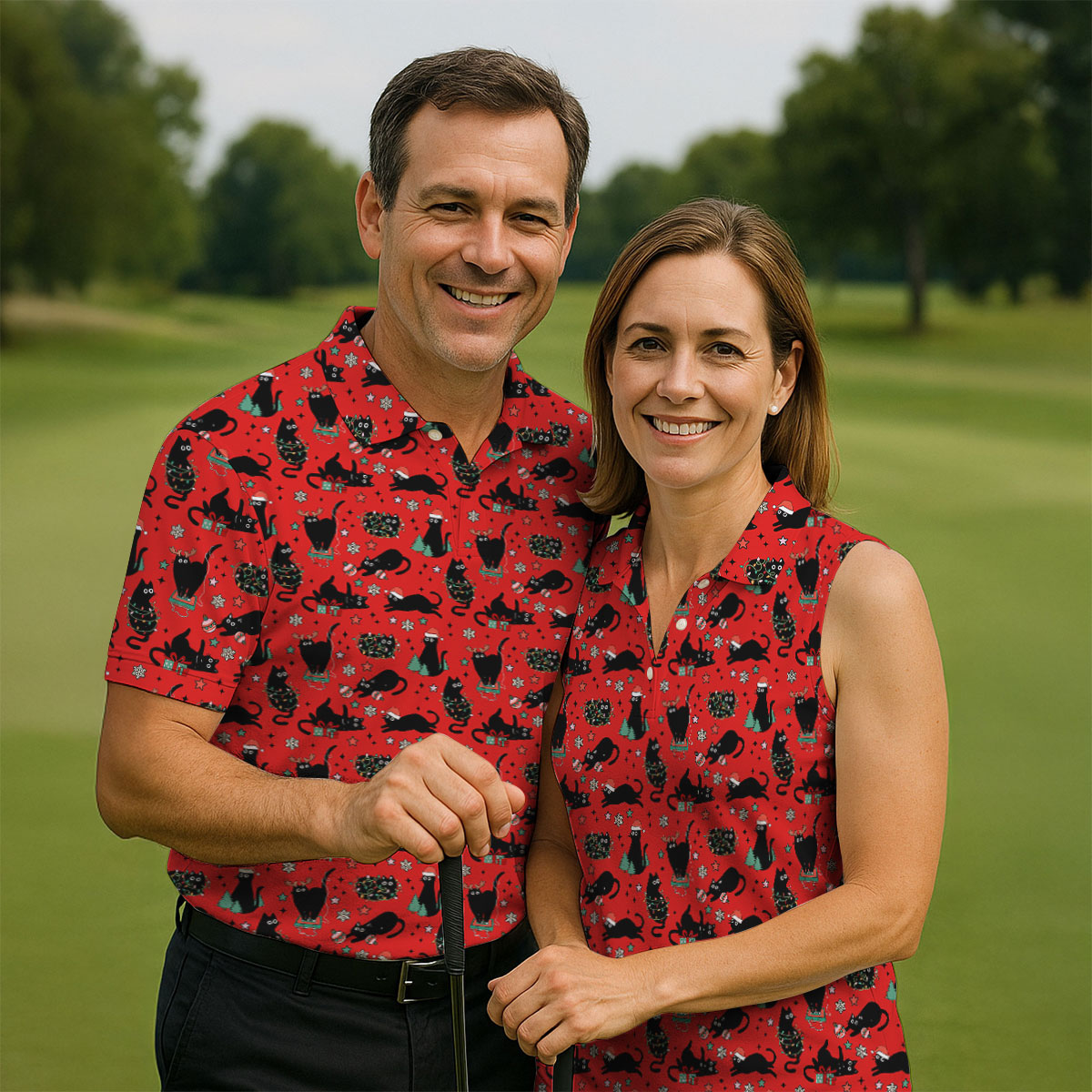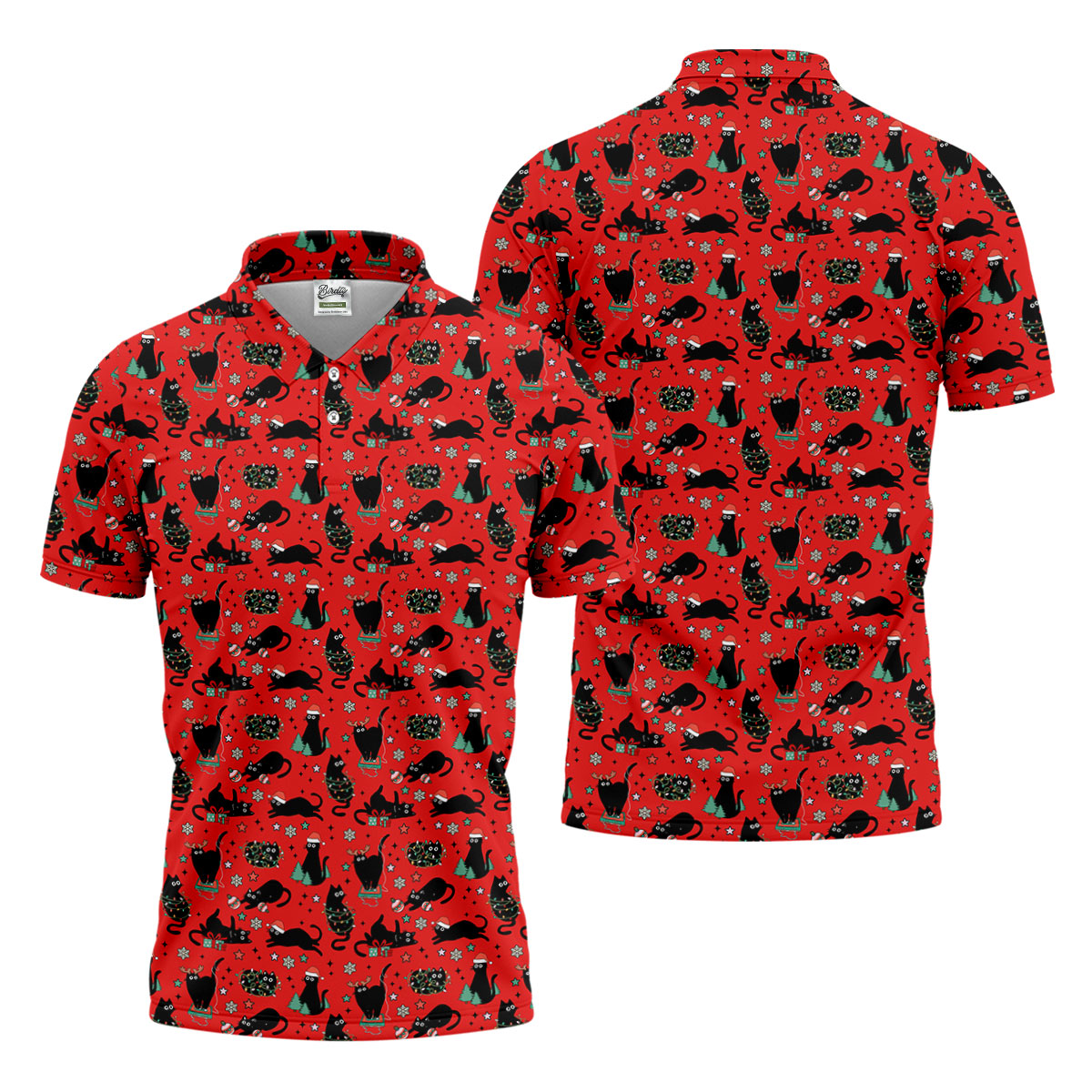 Xmas Black Cat Red Golf Shirt, Polo Shirts For Men, Christmas Golf Shirt, Golf Gift For Men, Christmas Golf Gift