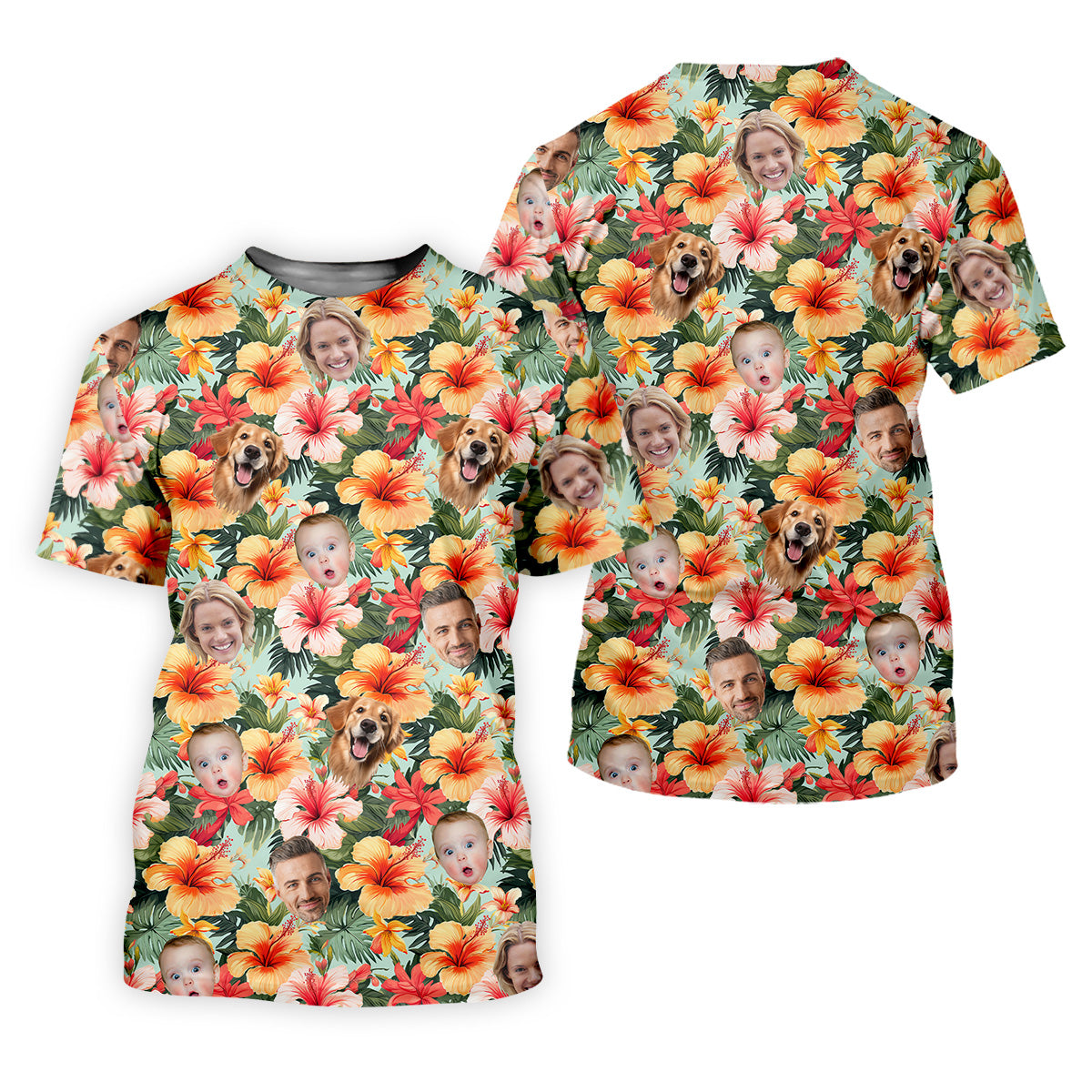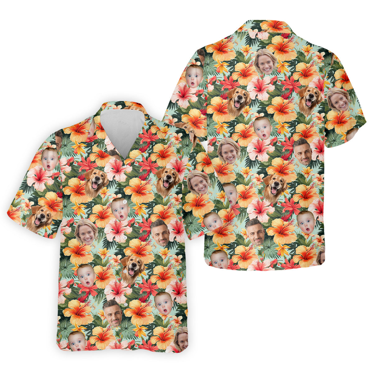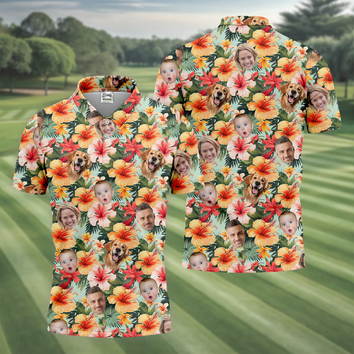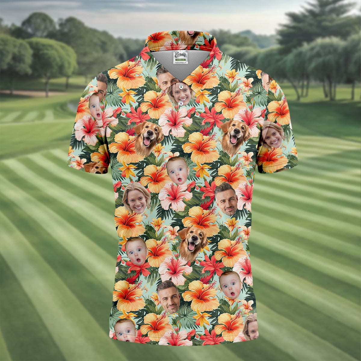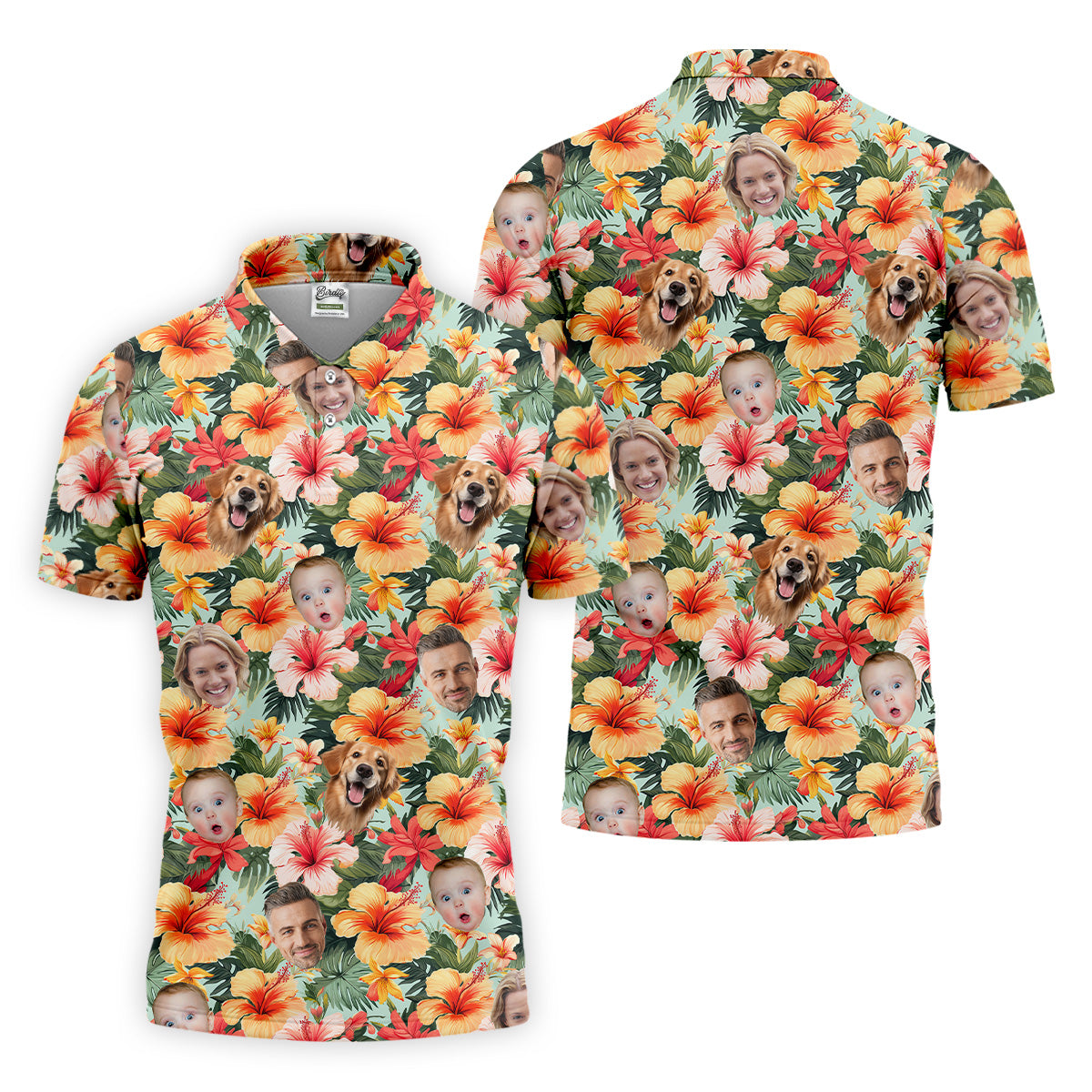 Yellow Hibiscus Flower Hawaiian Golf Shirt, Custom Face Shirt, Flower Men Shirt, Best Gifts For Men Golfers