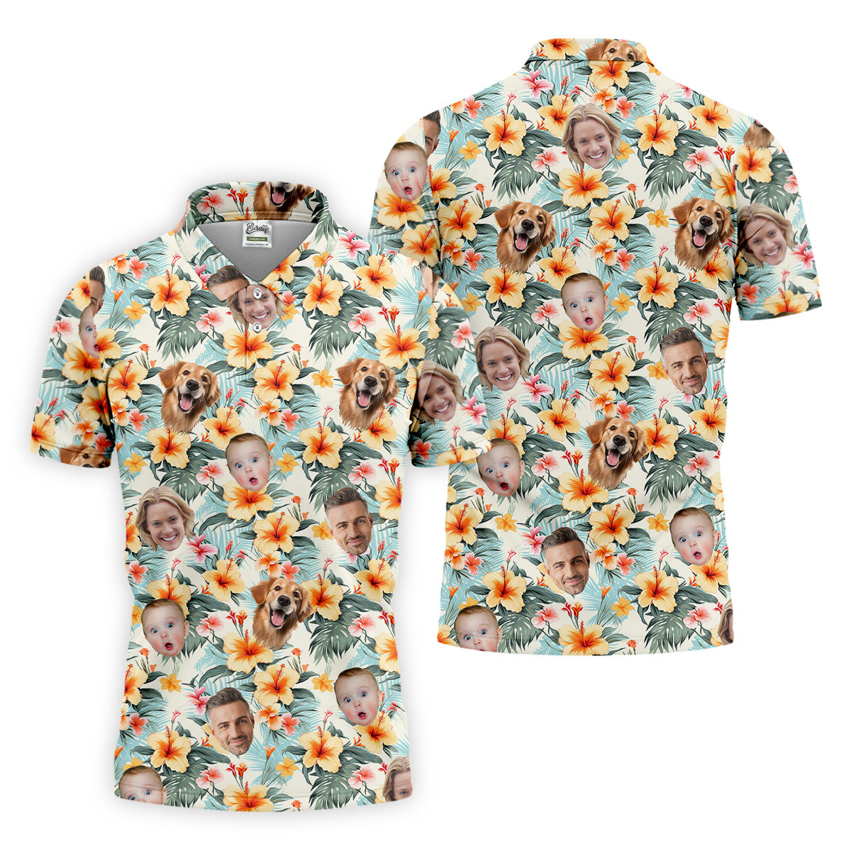 Yellow Hibiscus Flower Hawaiian Golf Shirt, Custom Face Shirt, Great Golf Gifts For Guys, Flower Men Shirt