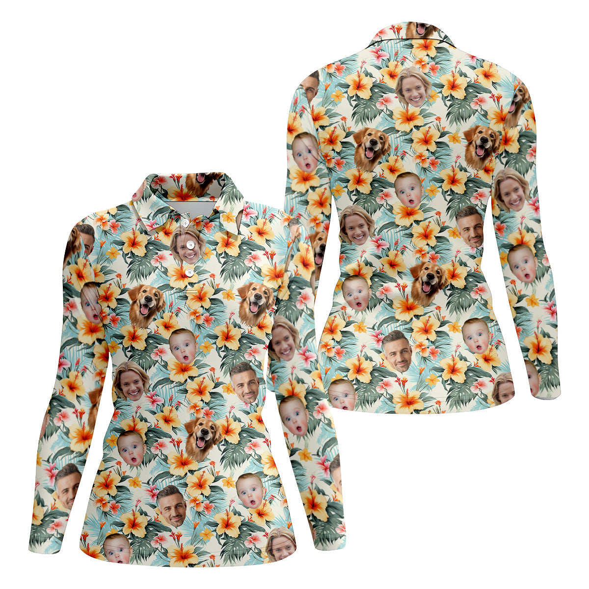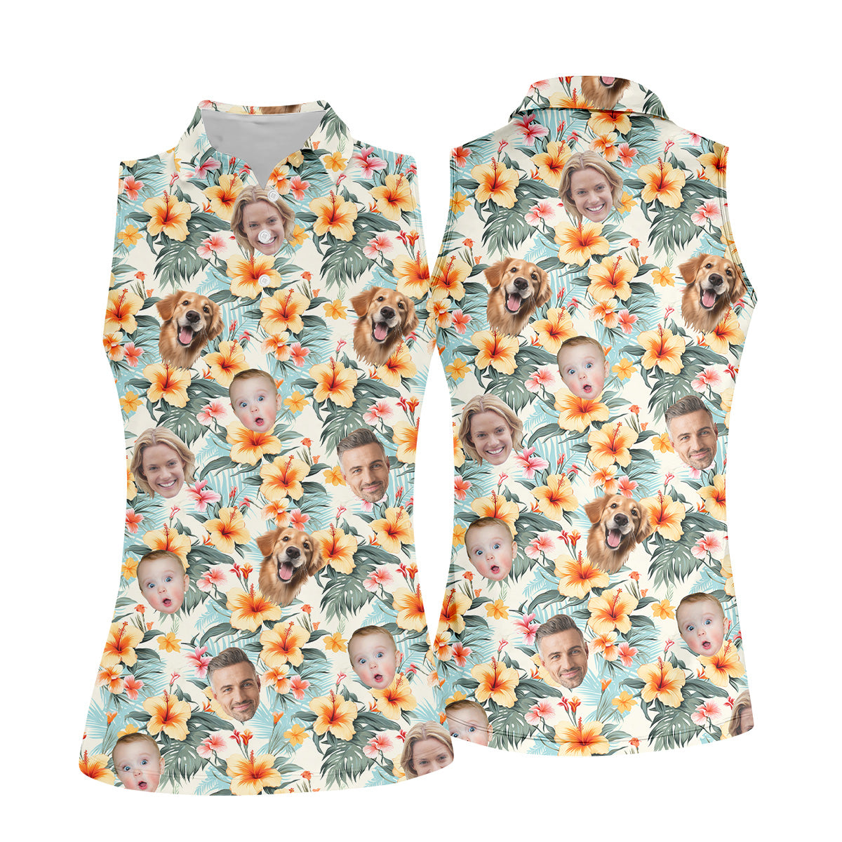 Yellow Hibiscus Flower Hawaiian Golf Shirt, Custom Face Shirt, Womens Sleeveless Polo, Ladies Golf Shirts