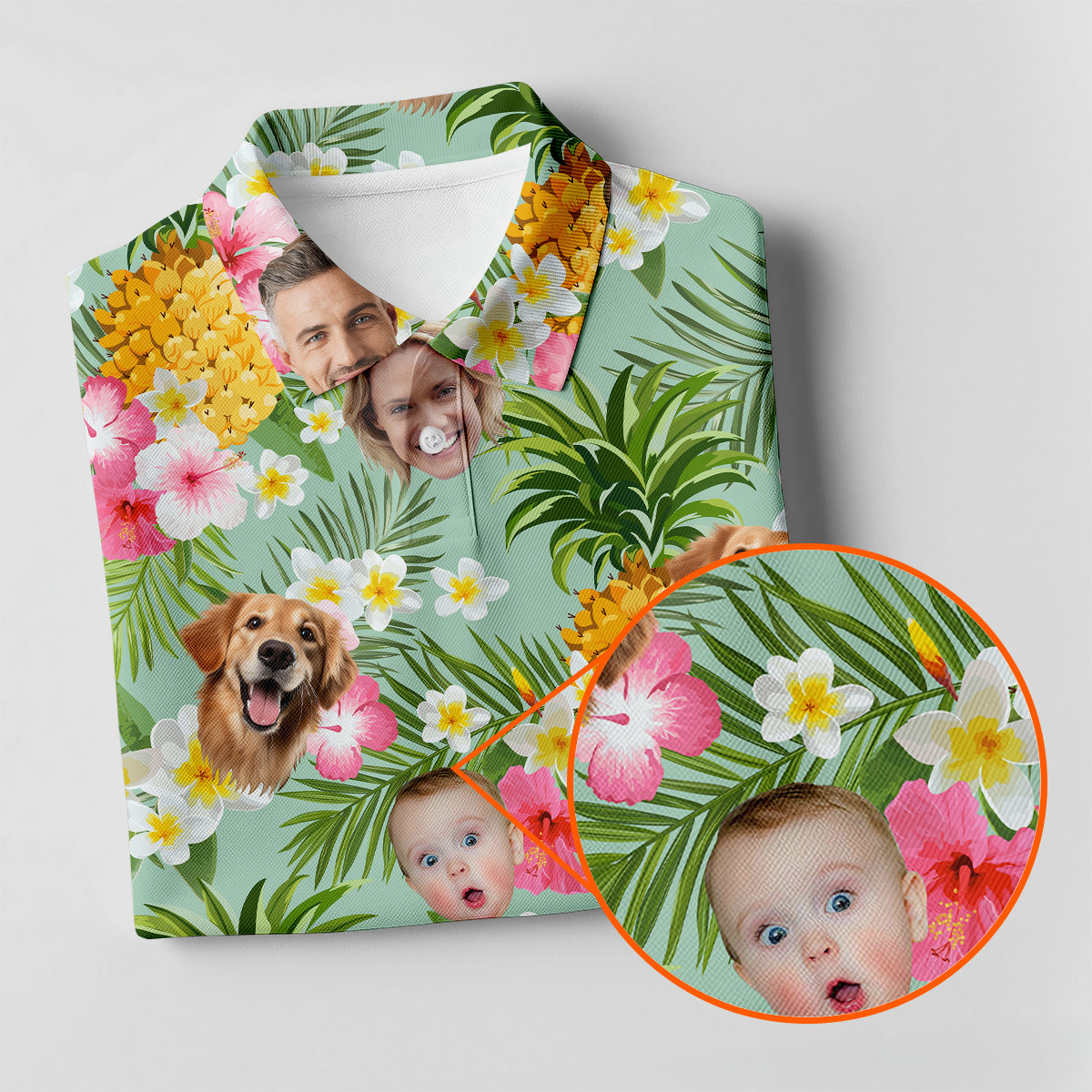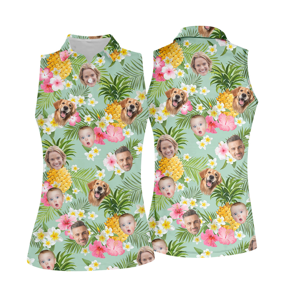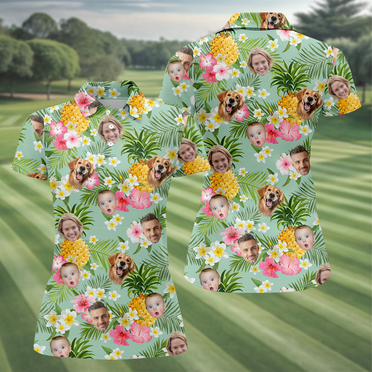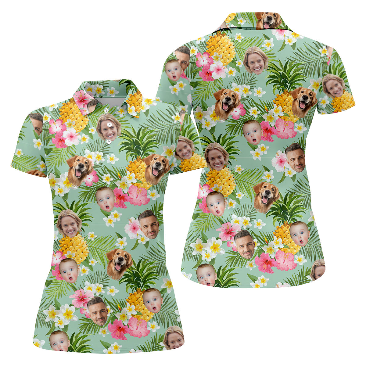Yellow Pineapple Floral Hawaiian Shirt, Custom Face Shirt, Ladies Long Sleeve Golf Shirts, Ladies Golf Polos