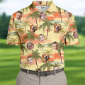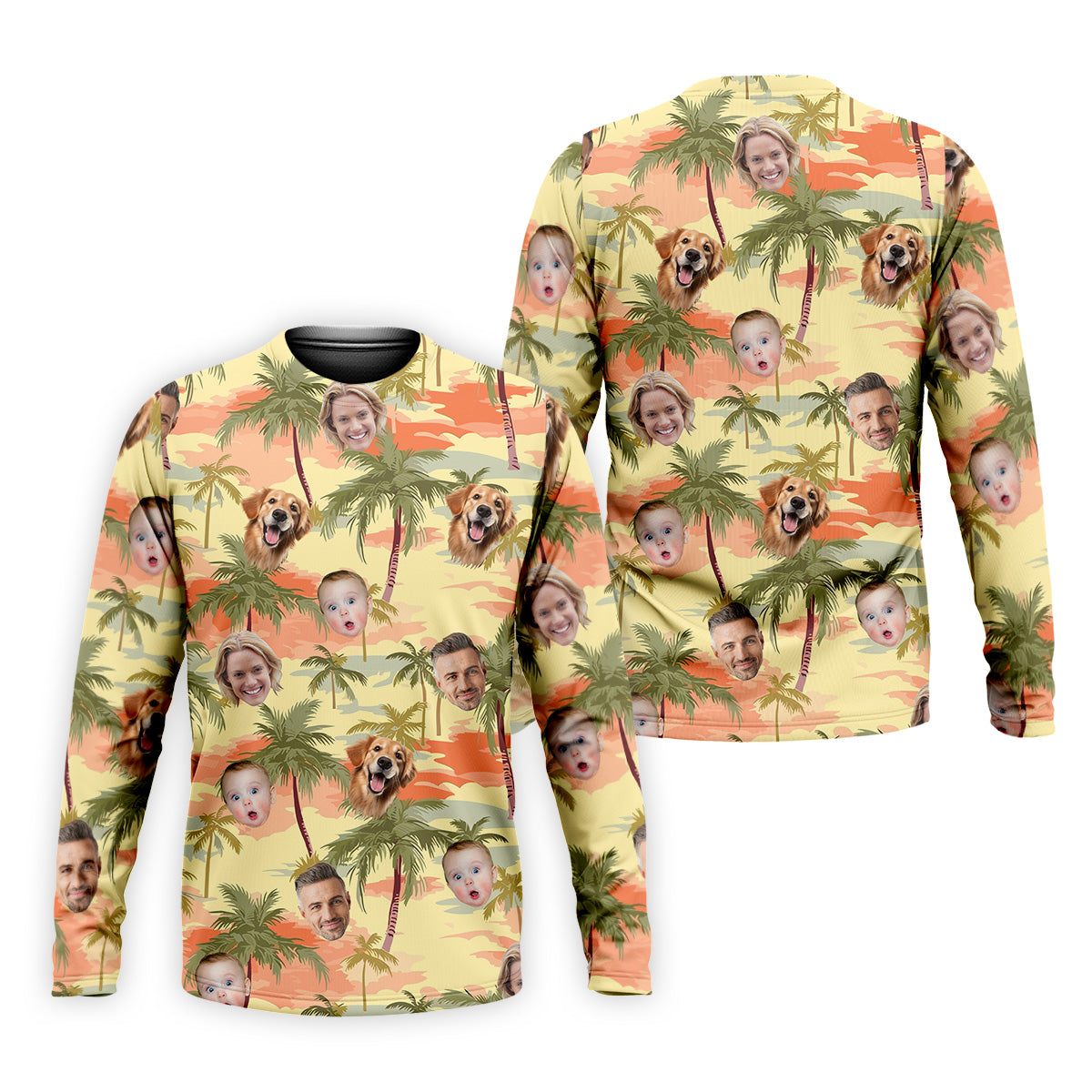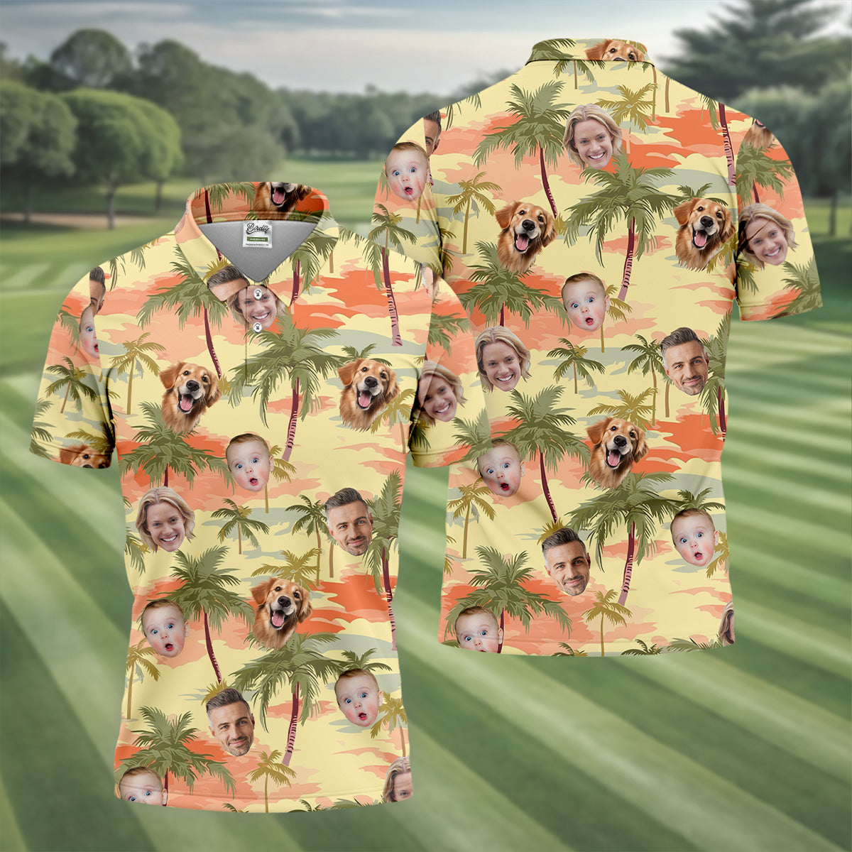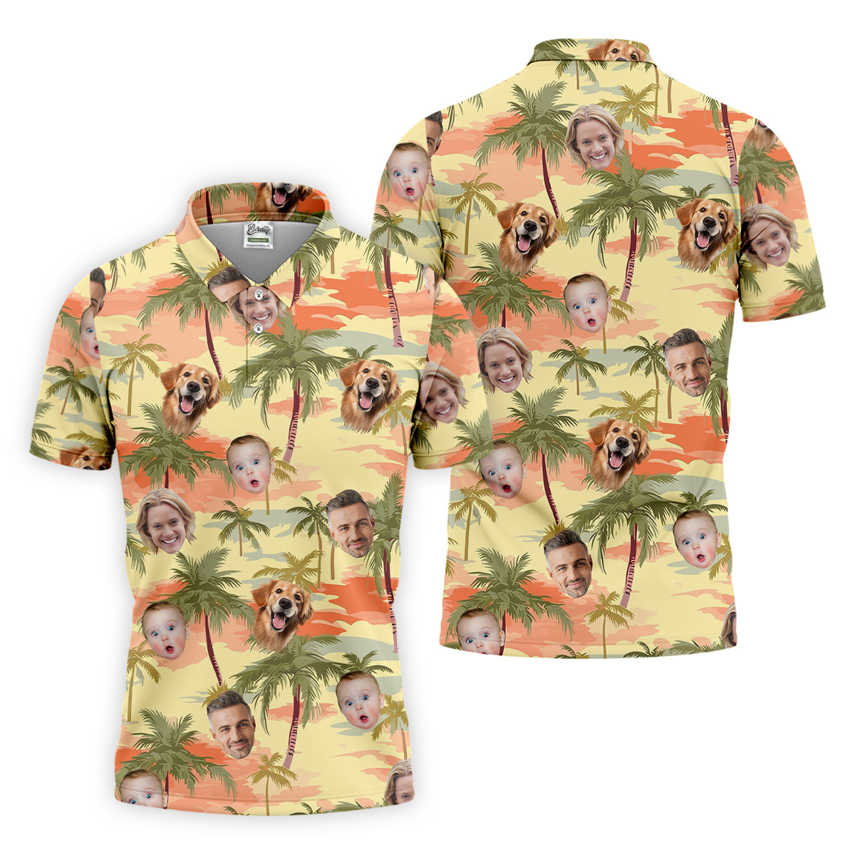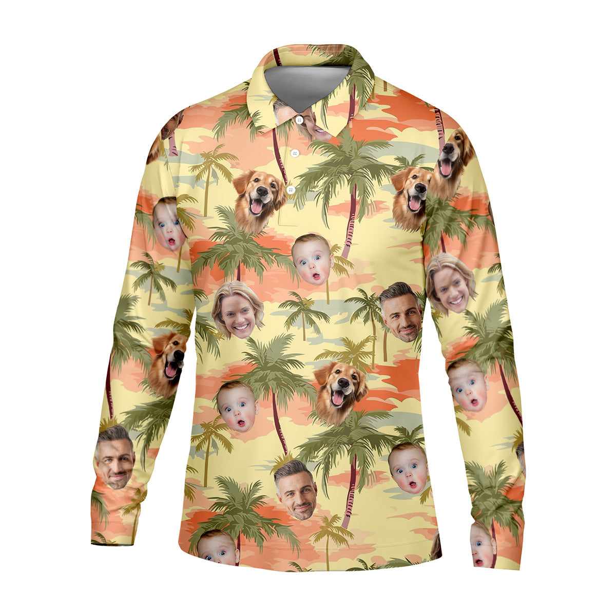 Yellow Sunset Hawaiian Shirt With Face, Men Golf Polo, Matching Hawaiian Outfits, Long Sleeve Polo