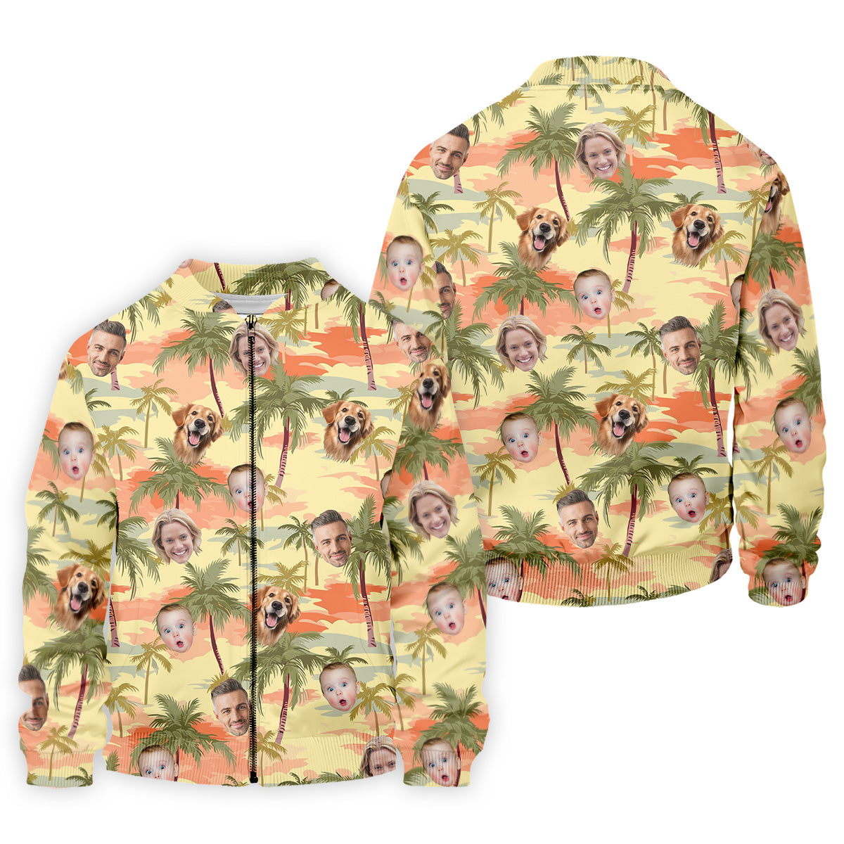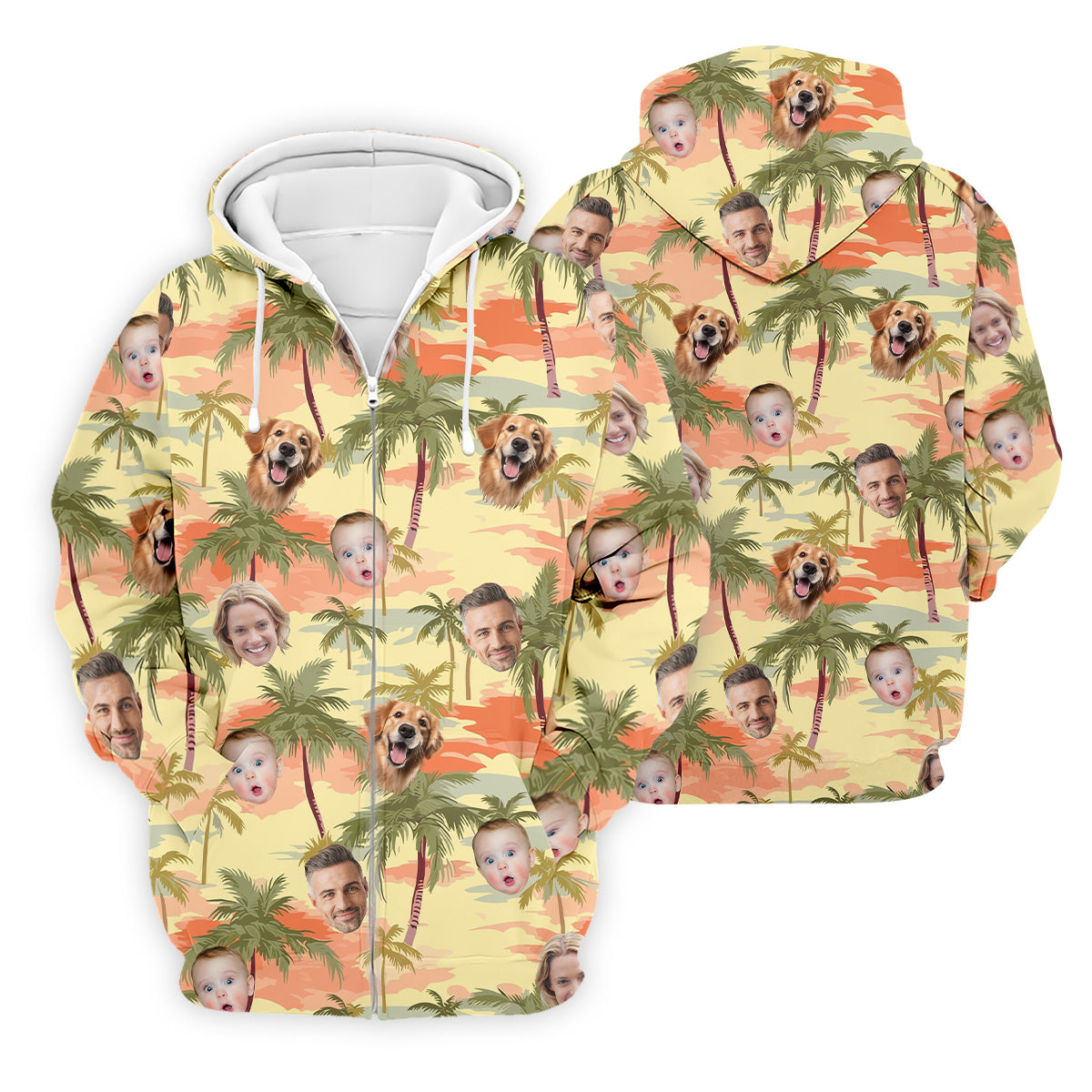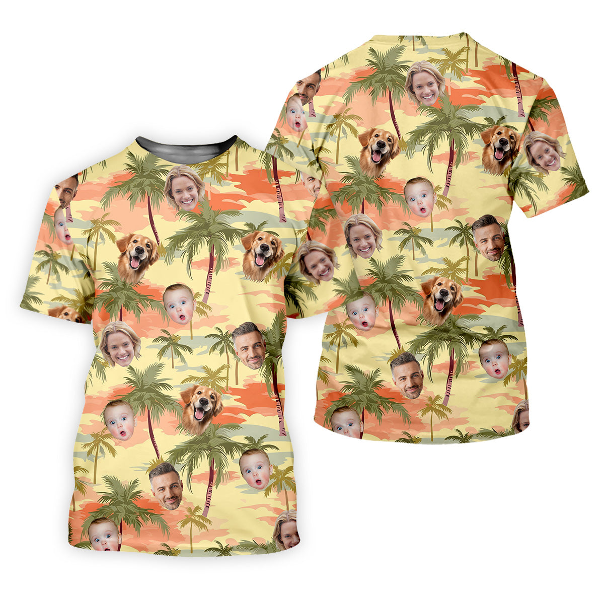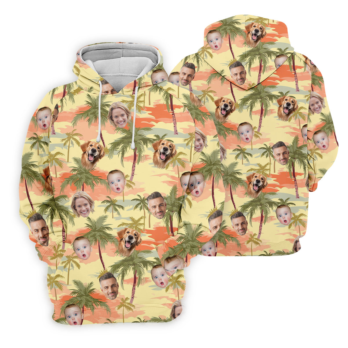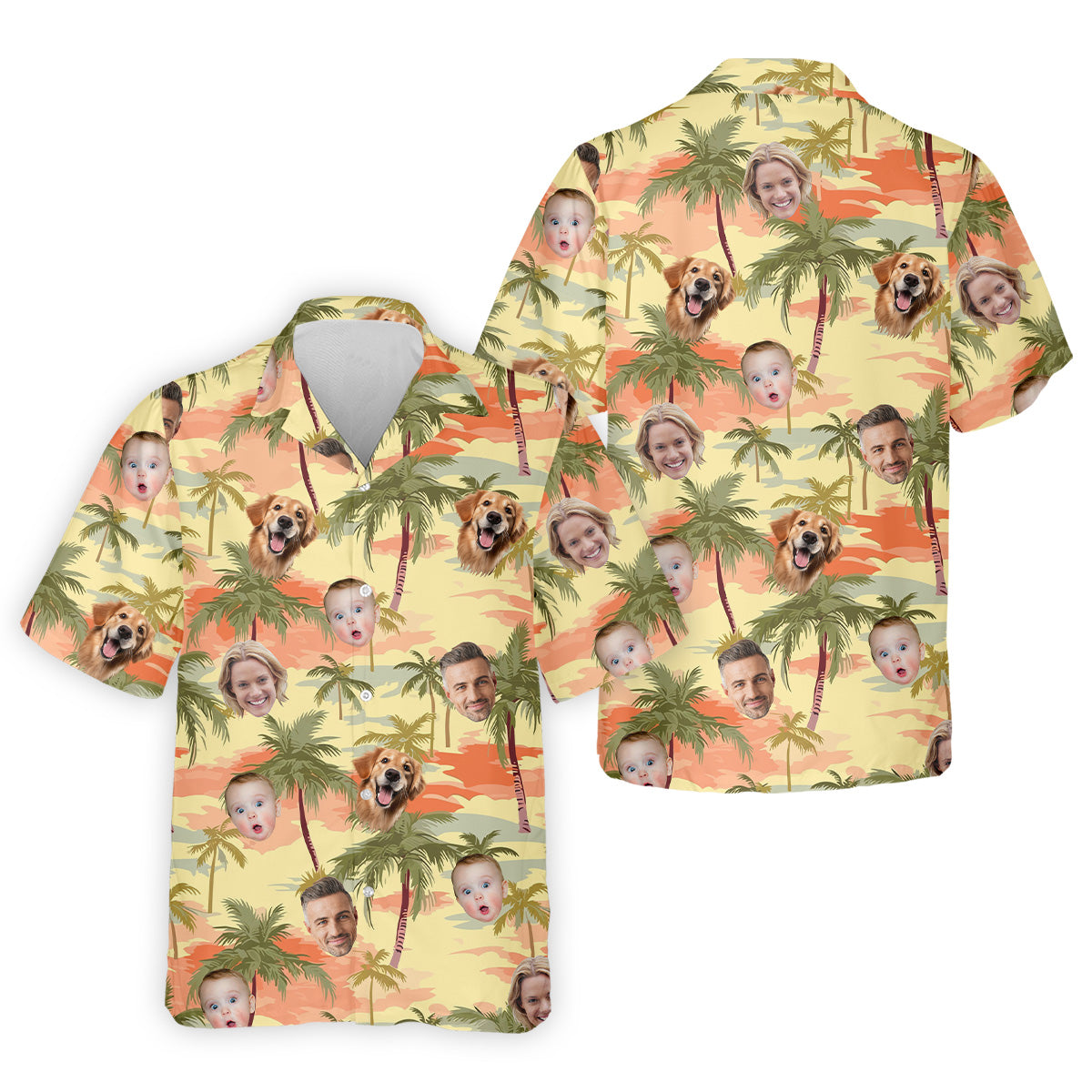 Yellow Sunset Hawaiian Shirt With Face, Men Golf Polo, Matching Hawaiian Outfits, Long Sleeve Polo